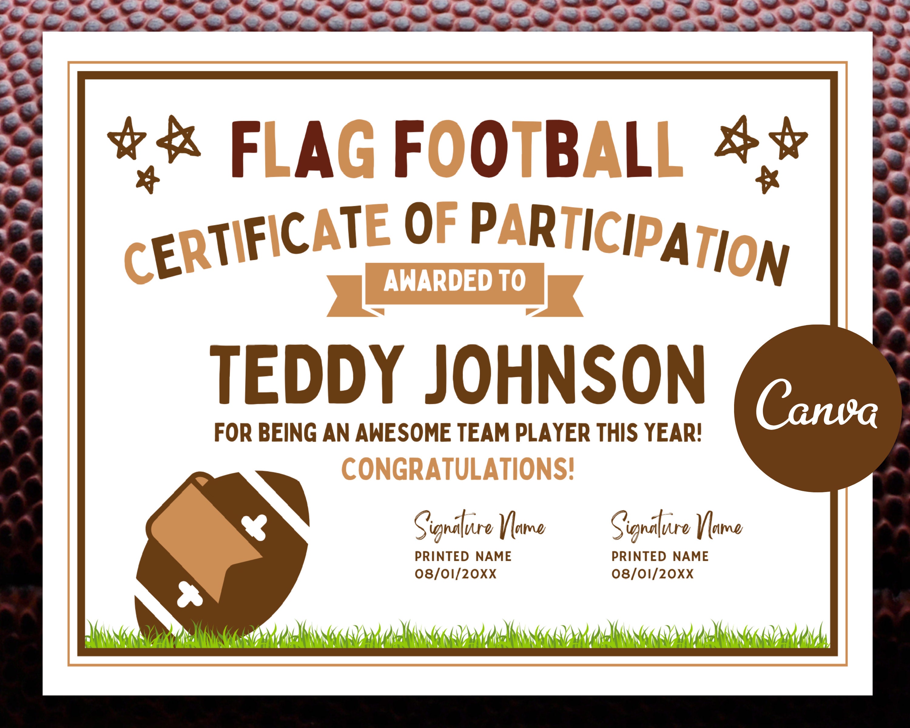 Editable Flag Football Award Certificates Etsy