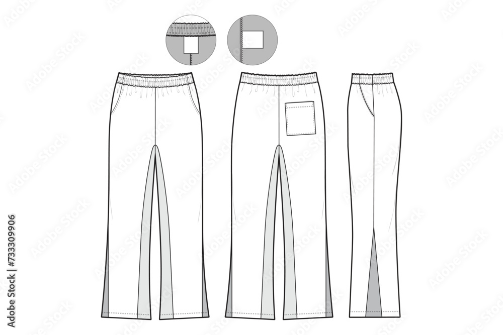 flare Sweatpants Flat Technical Drawing Illustration Five Pocket