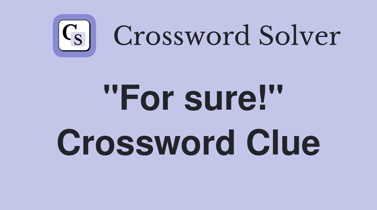 #39 #39 For sure #39 #39 Crossword Clue Answers Crossword Solver