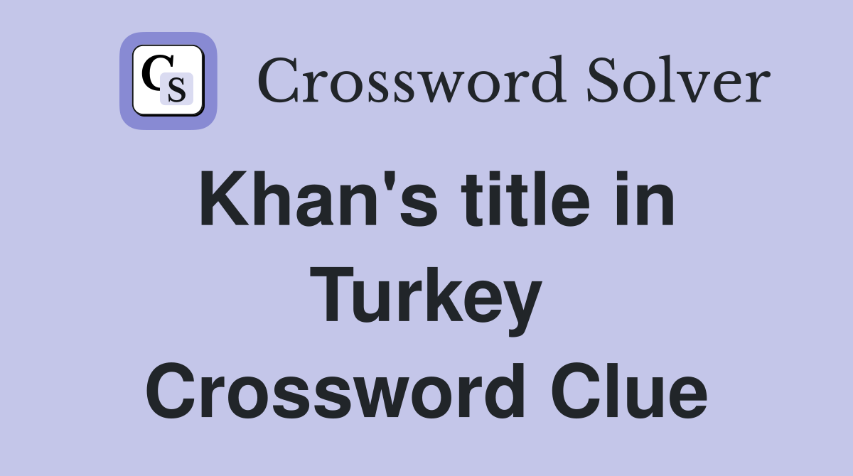 Khan #39 s title in Turkey Crossword Clue Answers Crossword Solver