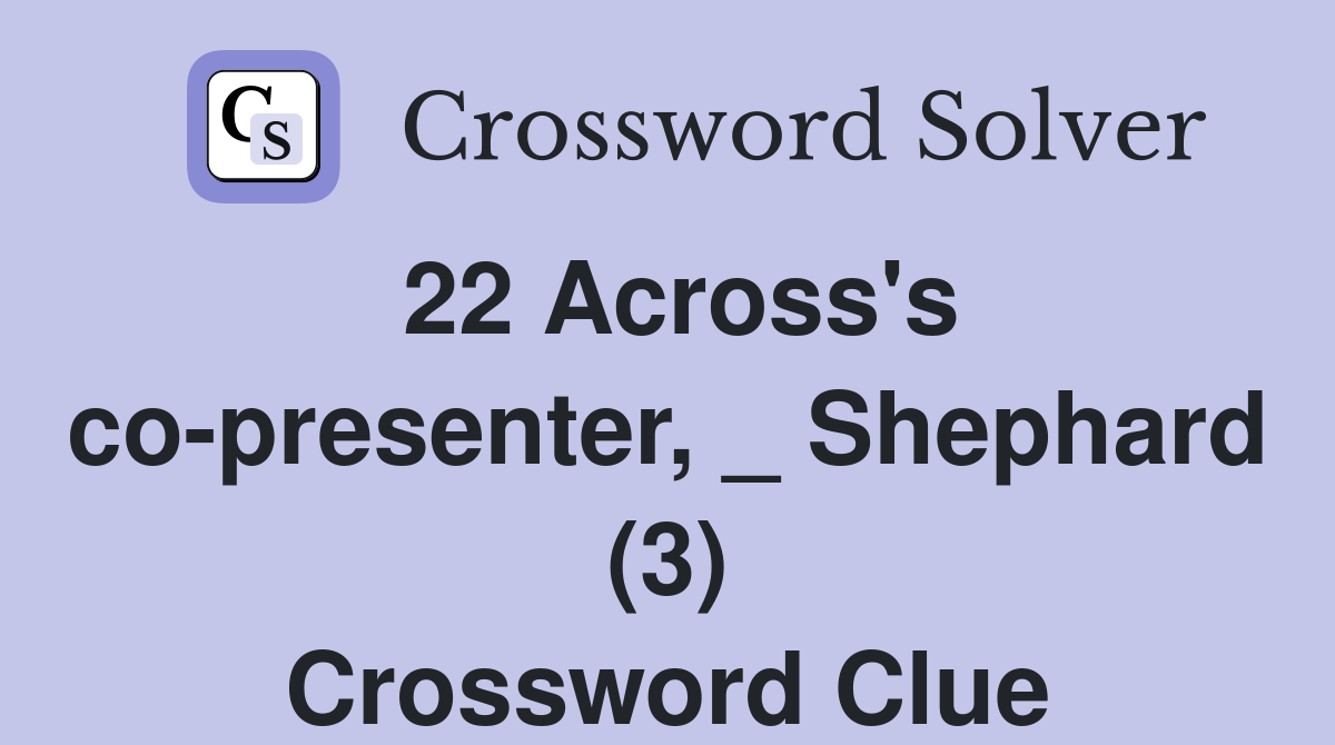 22 Across #39 s co presenter Shephard (3) Crossword Clue Answers