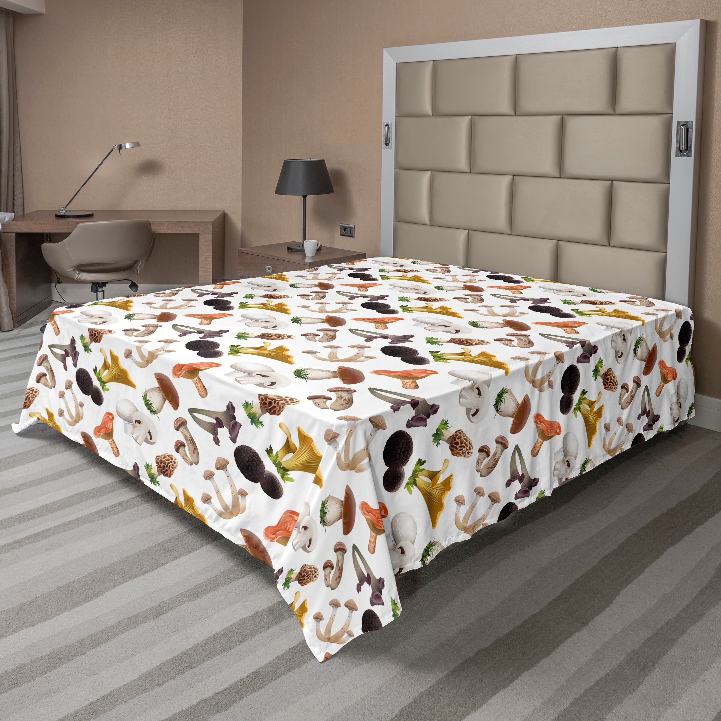 Ambesonne Mushroom Flat Sheet Realistic Medieval Botany King Size
