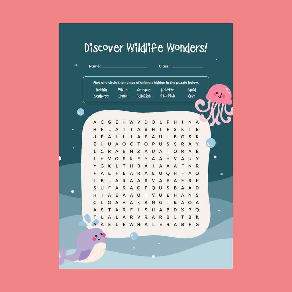flat design vector animal Crossword puzzle worksheet printable for kids