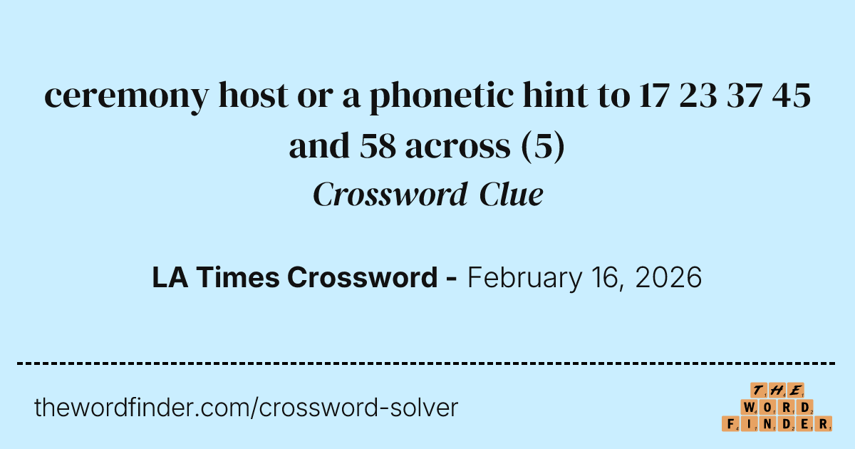 ceremony host or a phonetic hint to 17 23 37 45 and 58 across