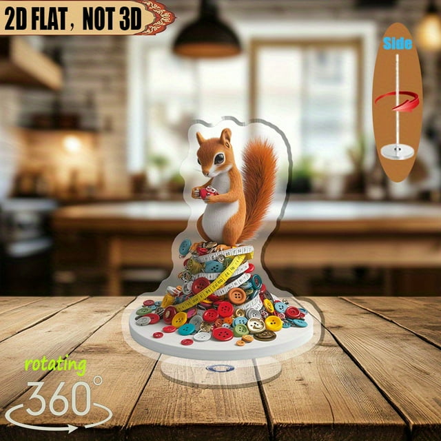 1pc 2d flat Rotating acrylic sculpture of a squirrel tangled in