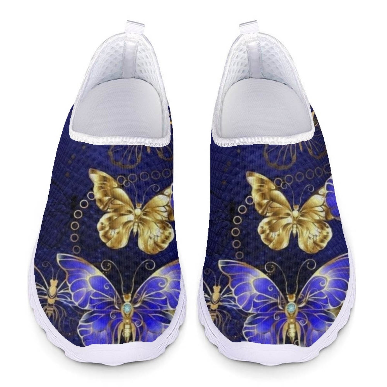 Cute Butterfly Print Lightweight Mesh Slip On Sneakers Flat Loafers