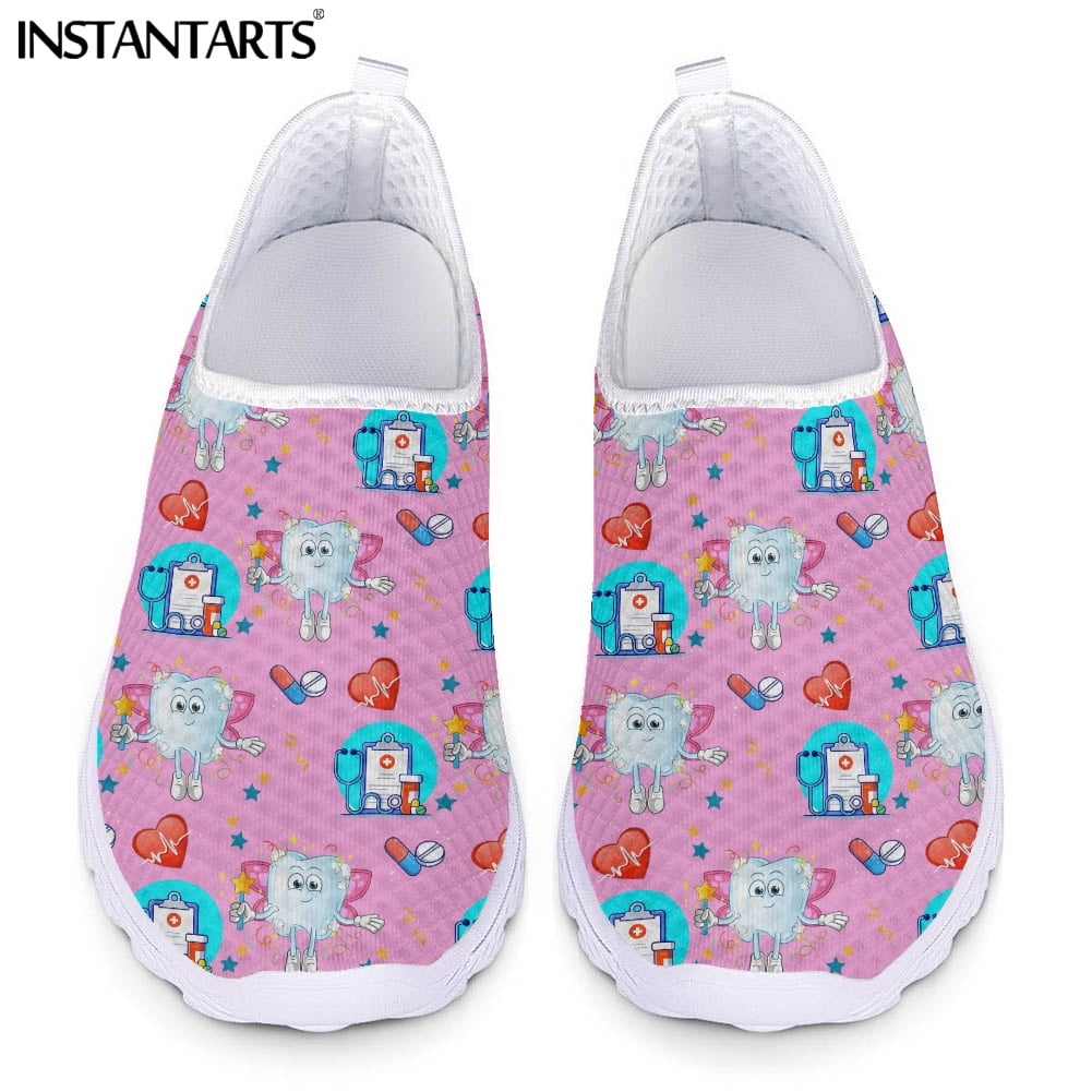 Cute Teeth Pattern Running Flat Shoes for Women Light Slip On Mesh