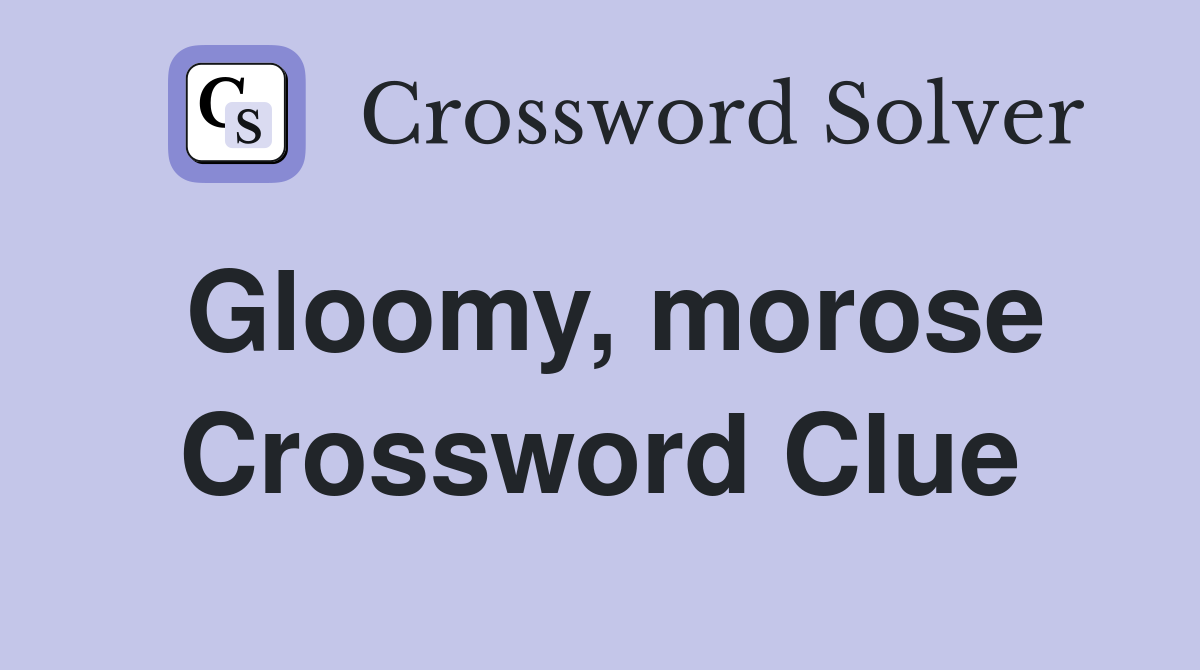 Gloomy morose Crossword Clue Answers Crossword Solver