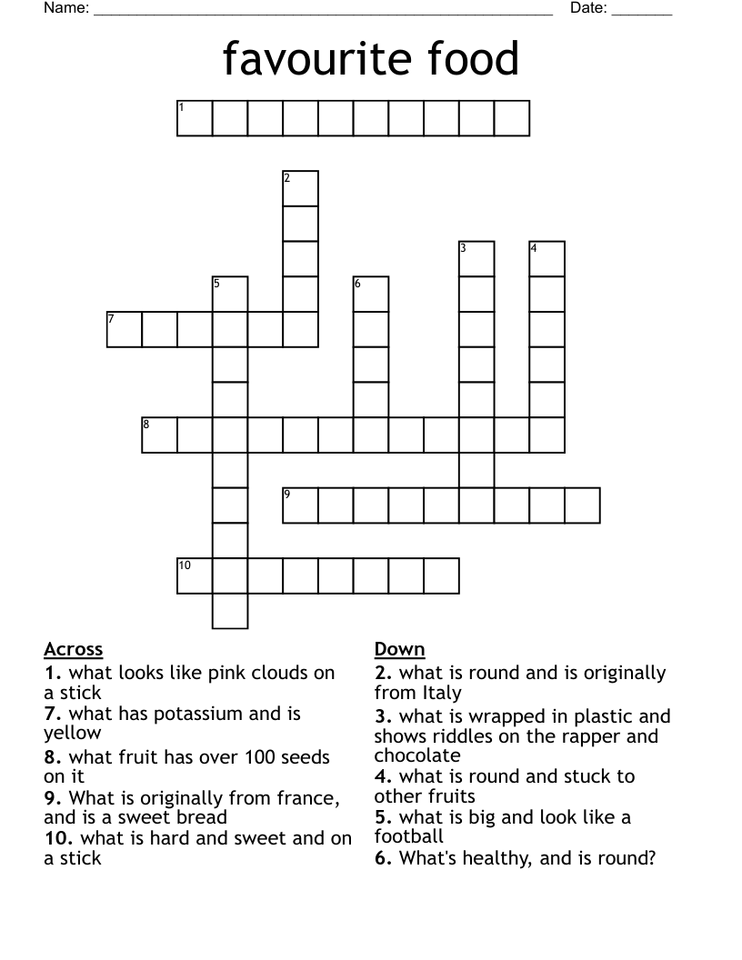 favourite food Crossword WordMint