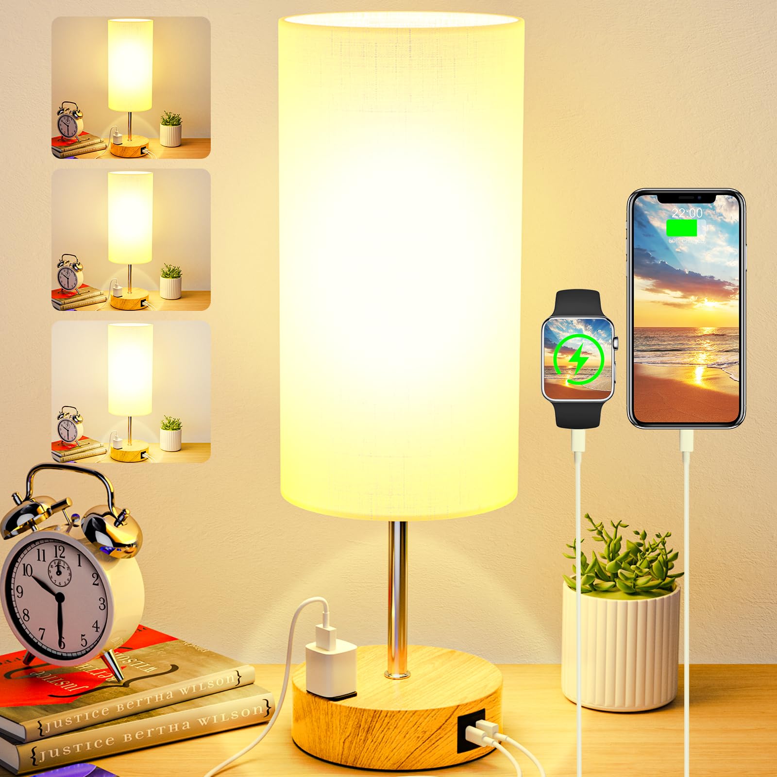 Table Lamp For Bedroom Infinitely Dimmable Nightstand Lamp With
