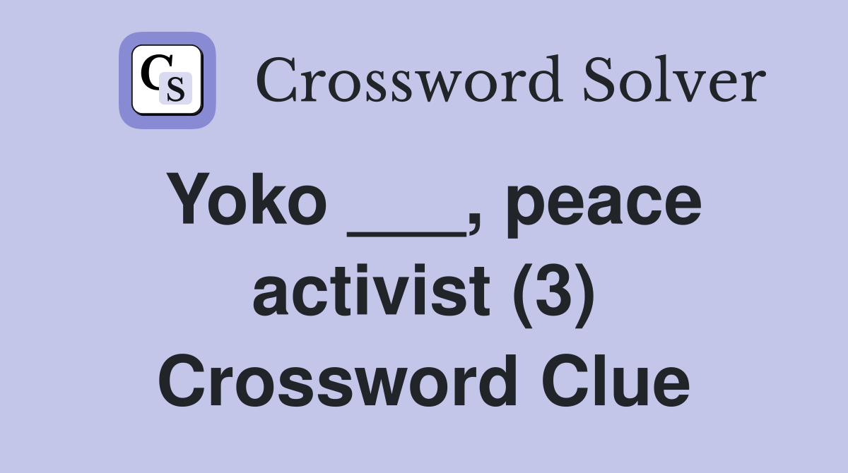 Yoko peace activist (3) Crossword Clue Answers Crossword Solver