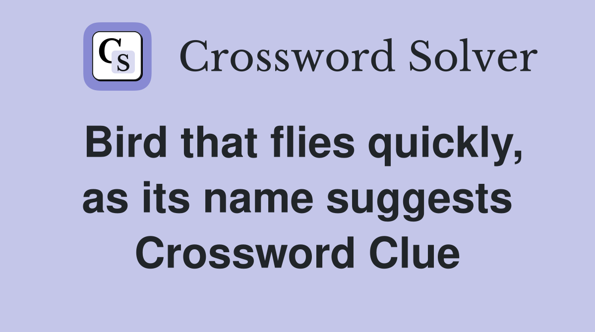 Bird that flies quickly as its name suggests Crossword Clue Answers