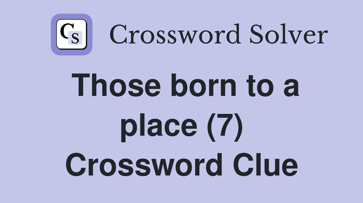 Those born to a place (7) Crossword Clue Answers Crossword Solver