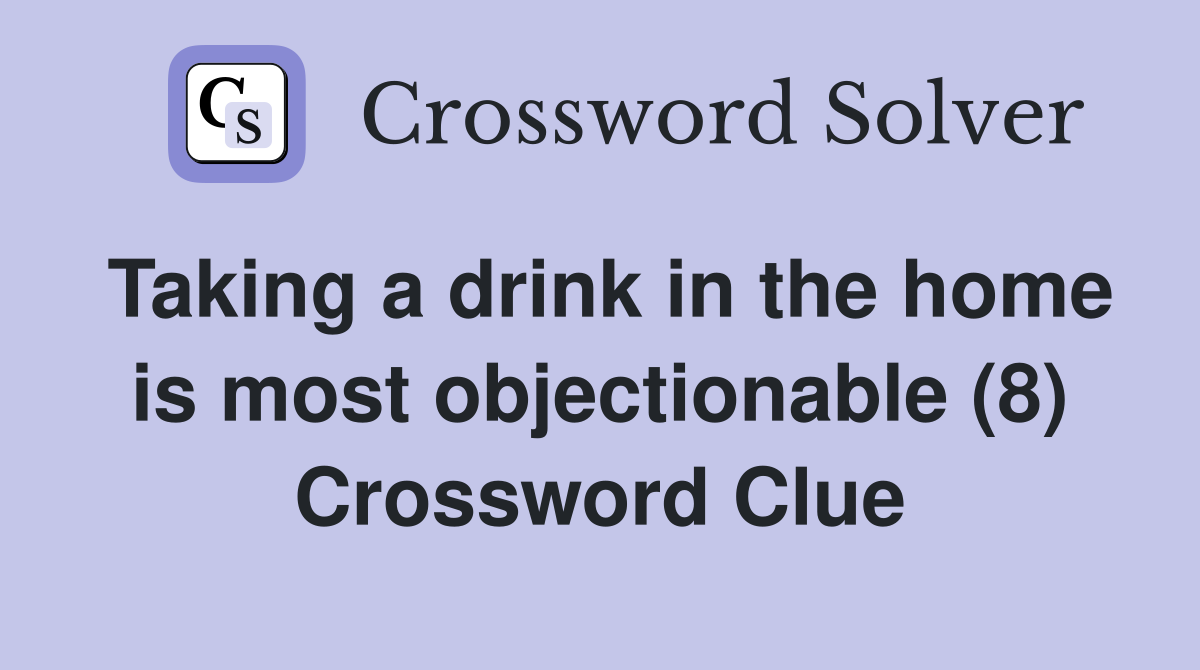 Taking a drink in the home is most objectionable (8) Crossword Clue