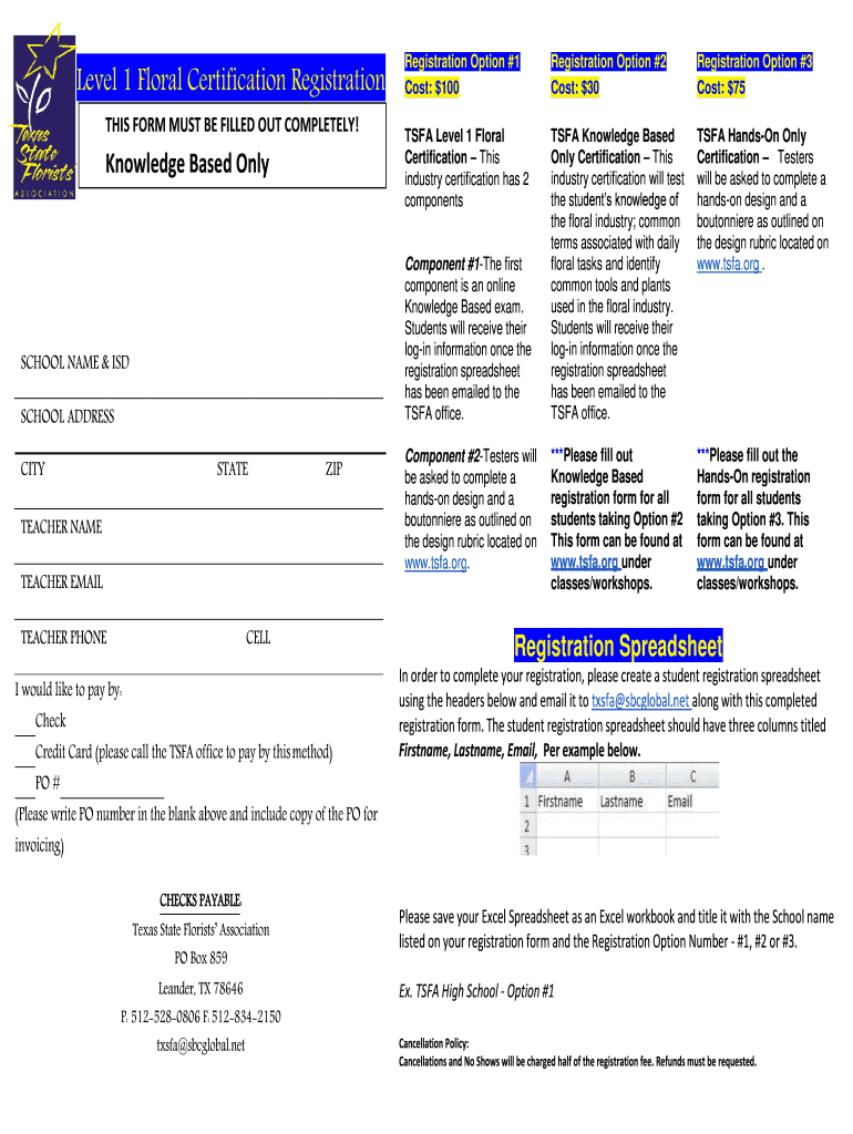 Fillable Online TSFA Level 1 Floral Certification Hands On Only Fax