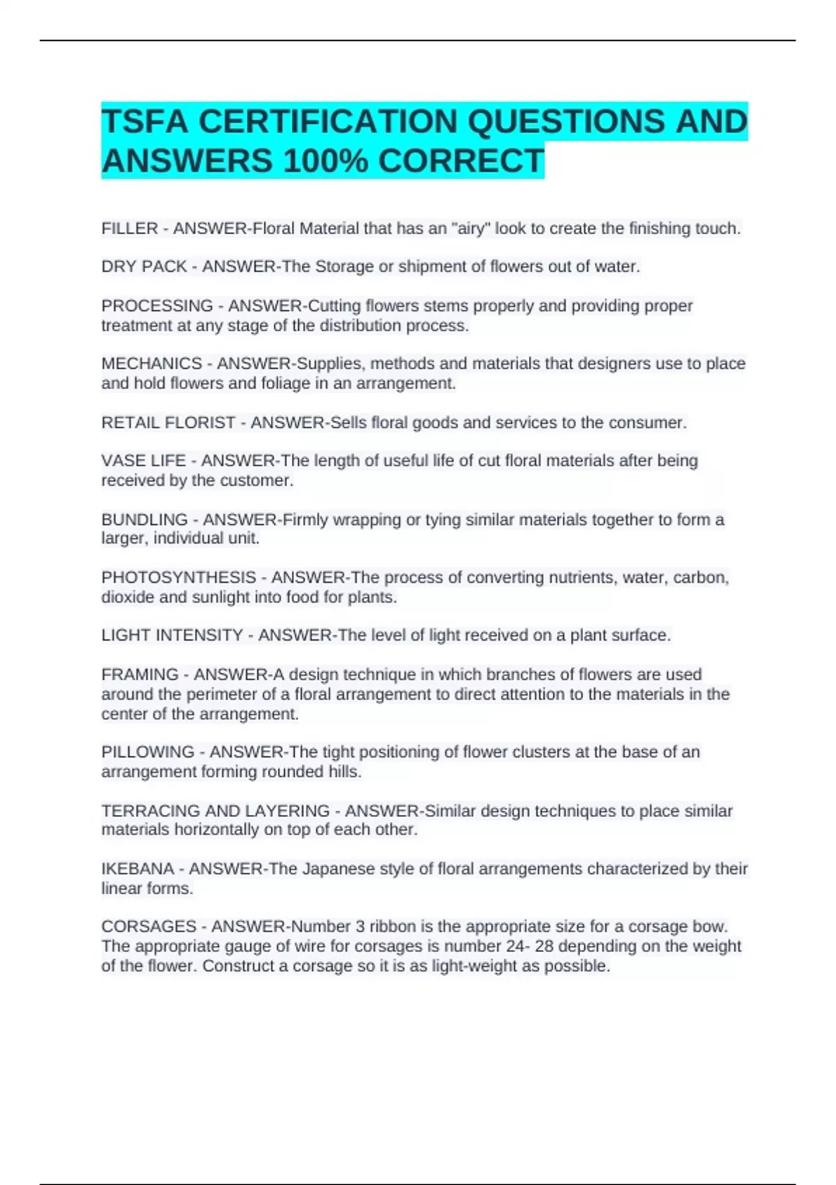 TSFA FLORAL CERTIFICATION STUDY BUNDLE PACK WITH COMPLETE SOLUTIONS