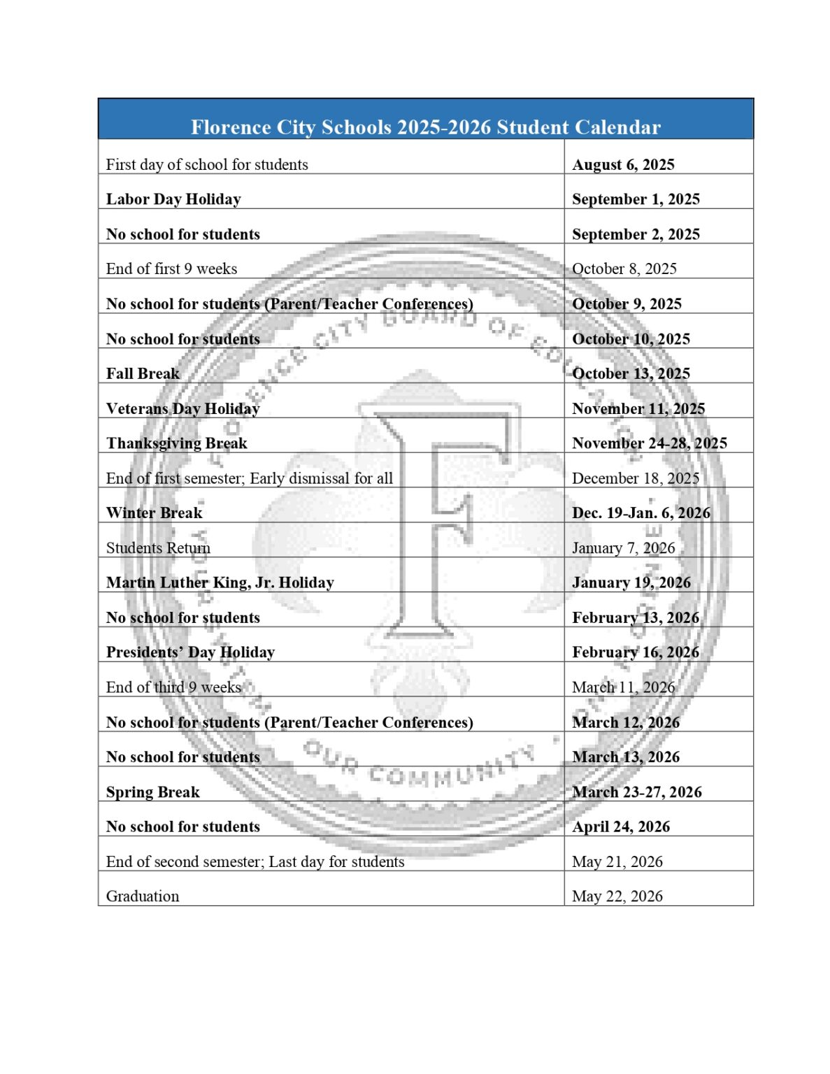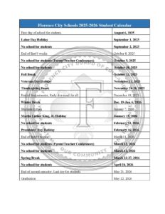 Florence City Schools Calendar 2025 2026 in PDF School Calendar Info