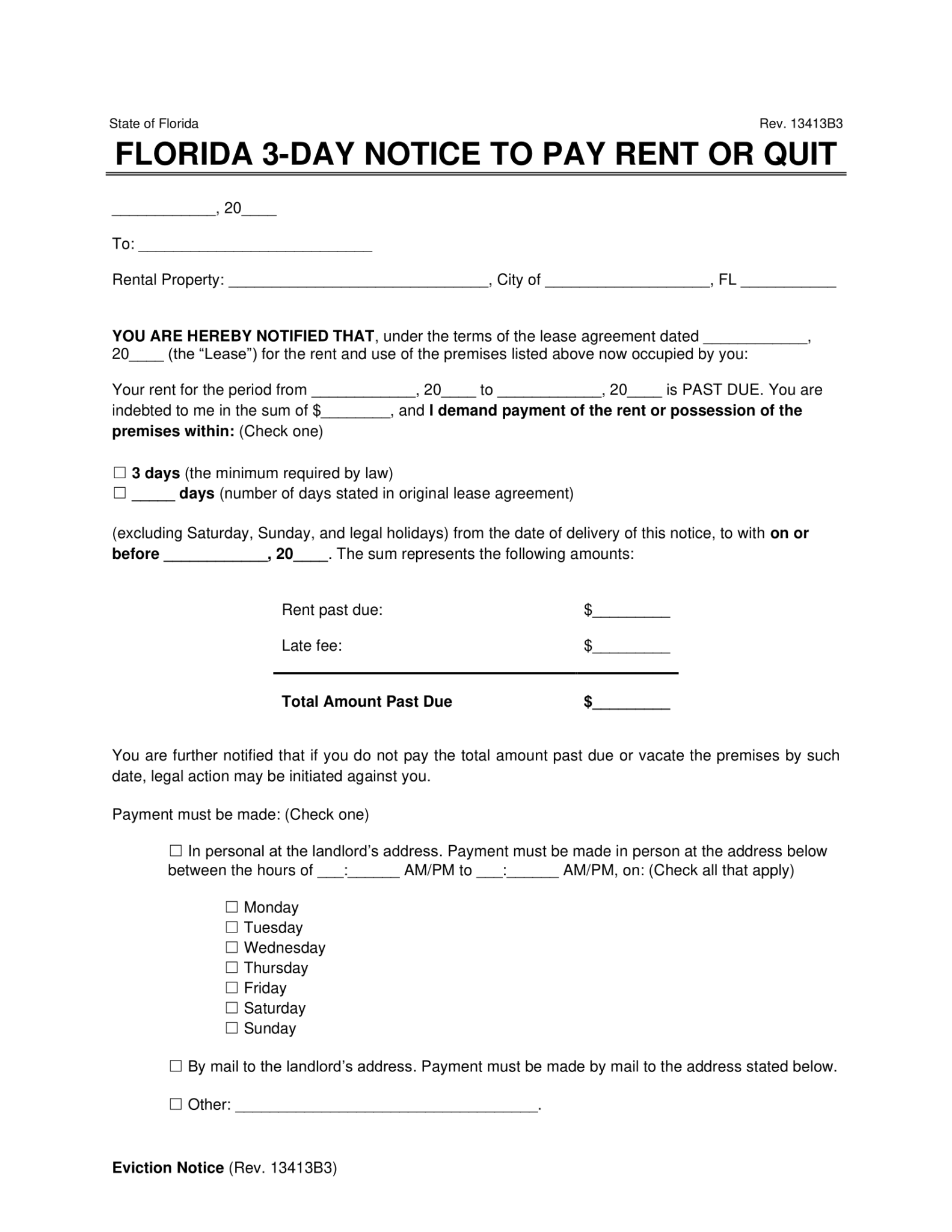 3 Day Notice Florida Template
