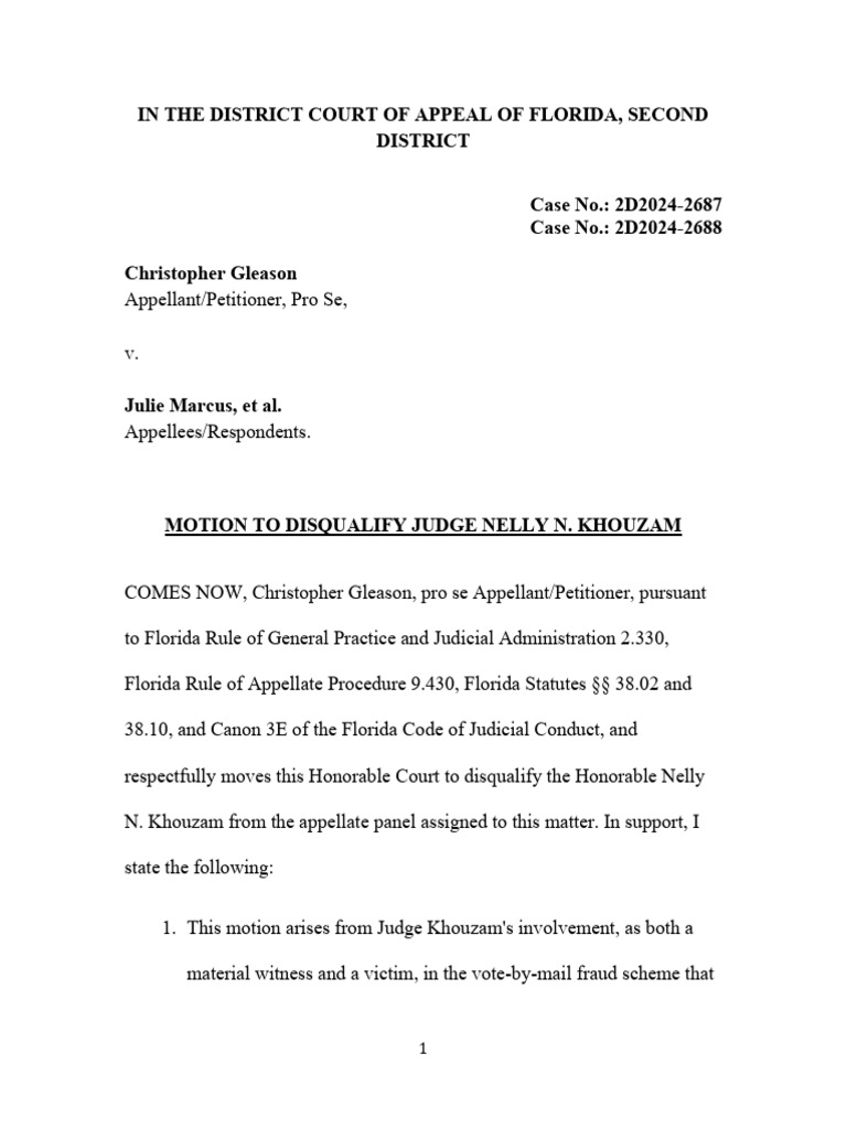 Miscellaneous Motion Motion To Disqualify Judge Nelly N Khouzam