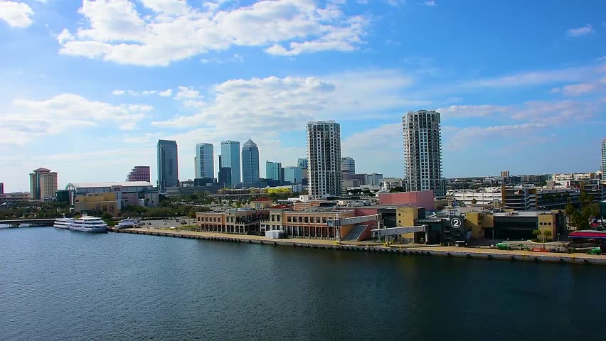 Tampa skyline with ships in the harbor in Florida image Free stock