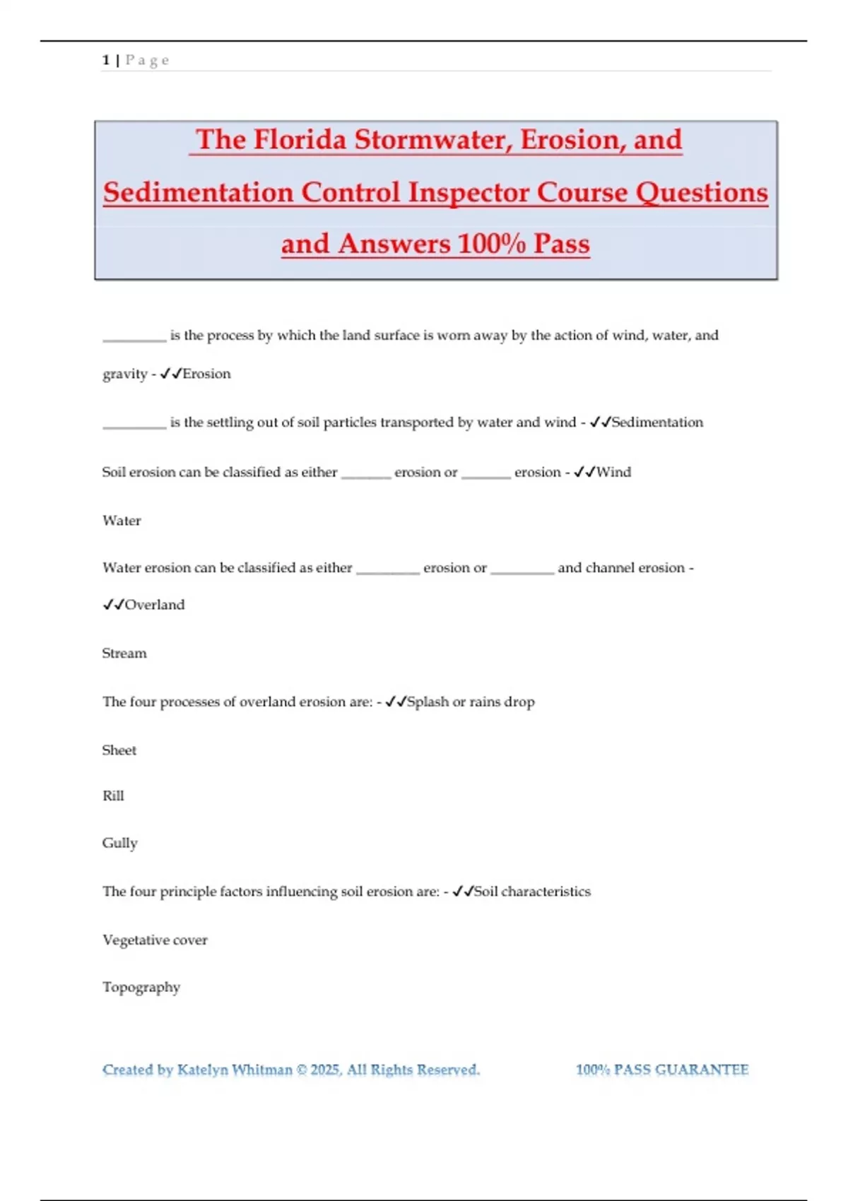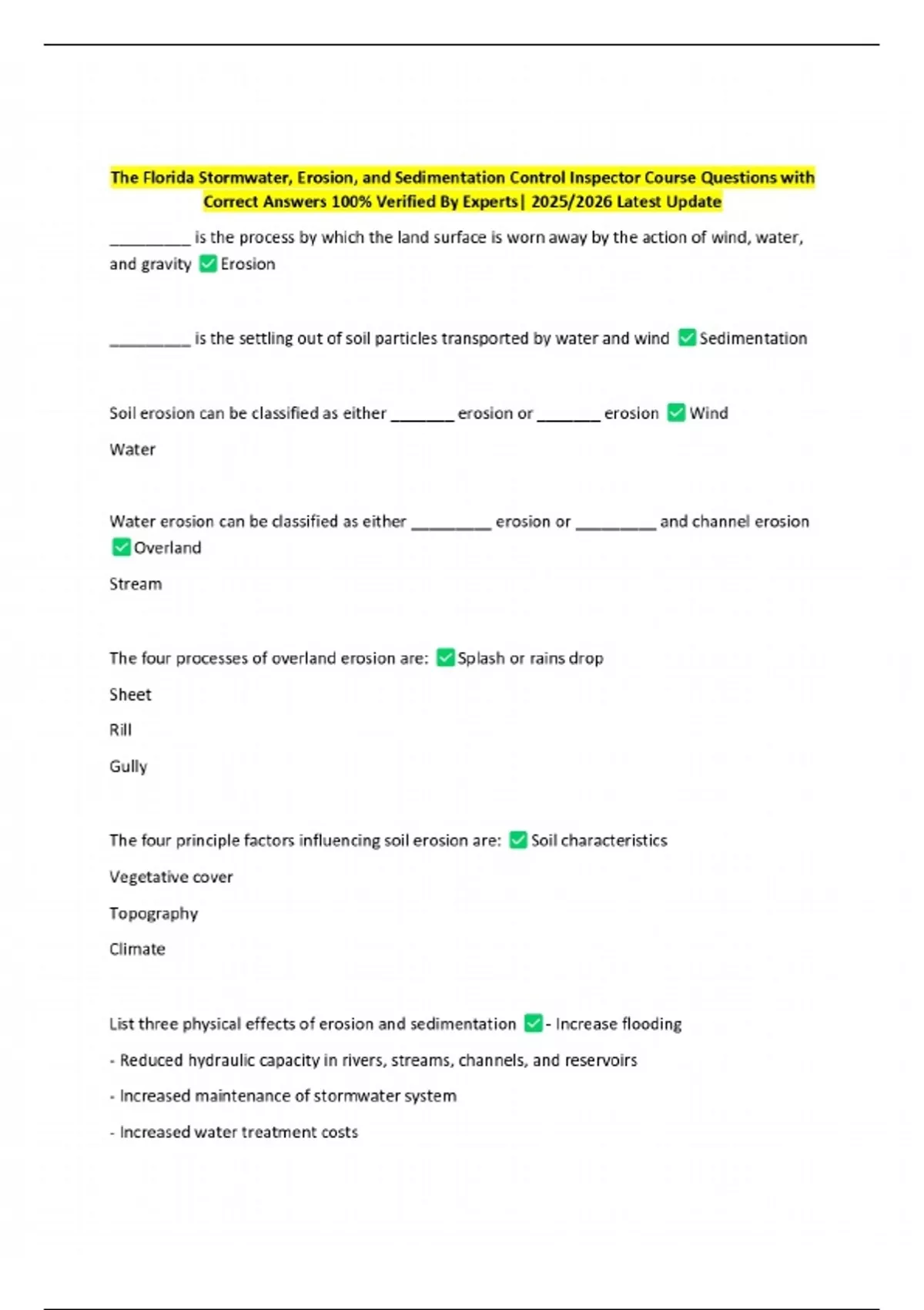 Florida Stormwater Inspector Course 2025/2026 100% Correct Answers on
