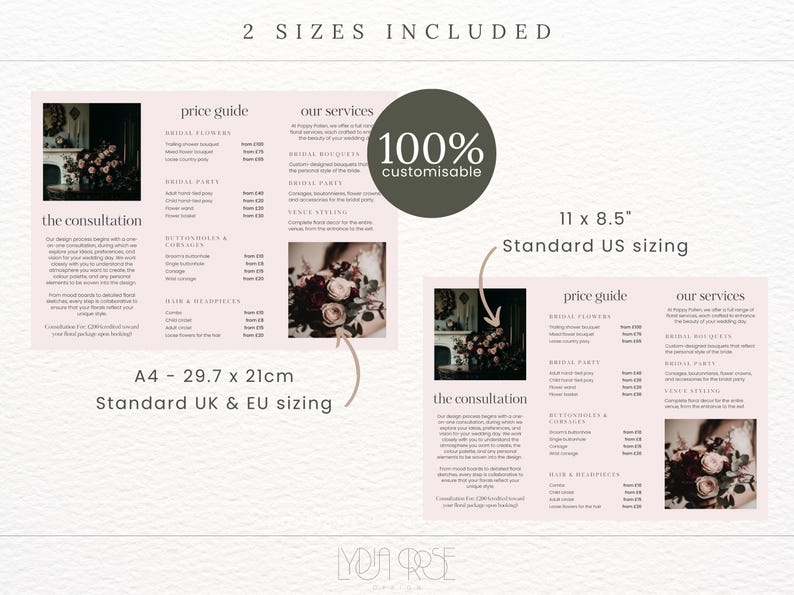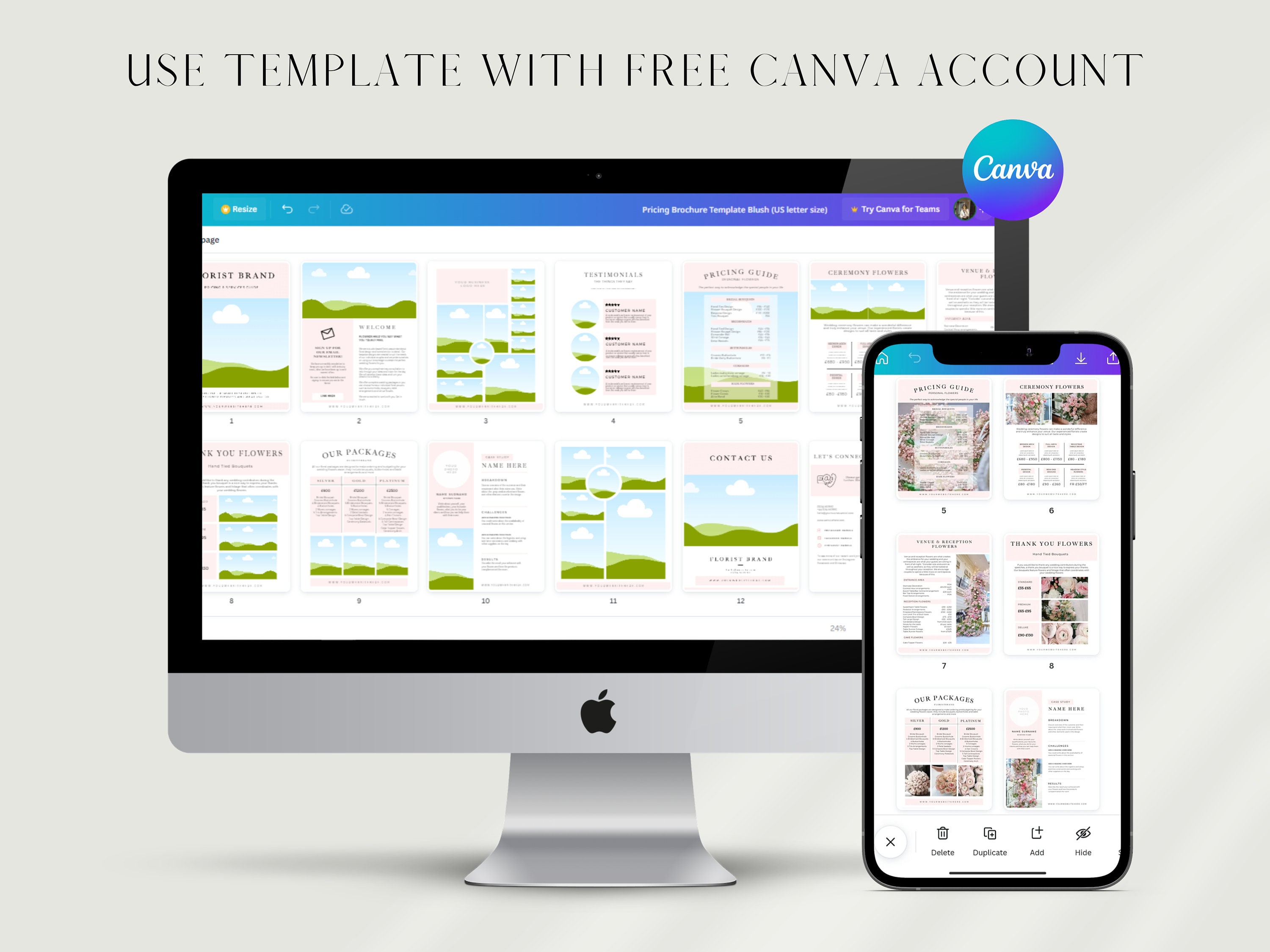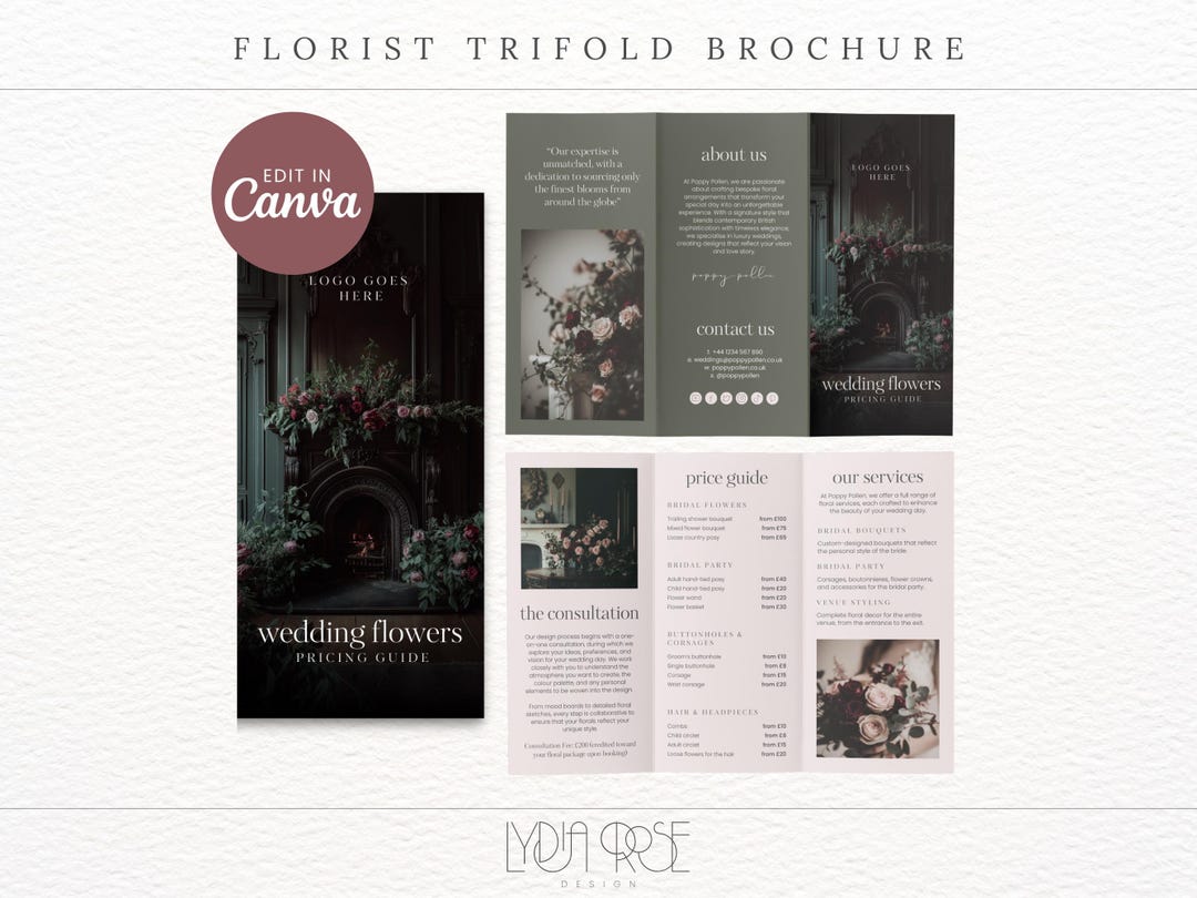 Wedding Florist Brochure Pricing Guide Editable CANVA Template for