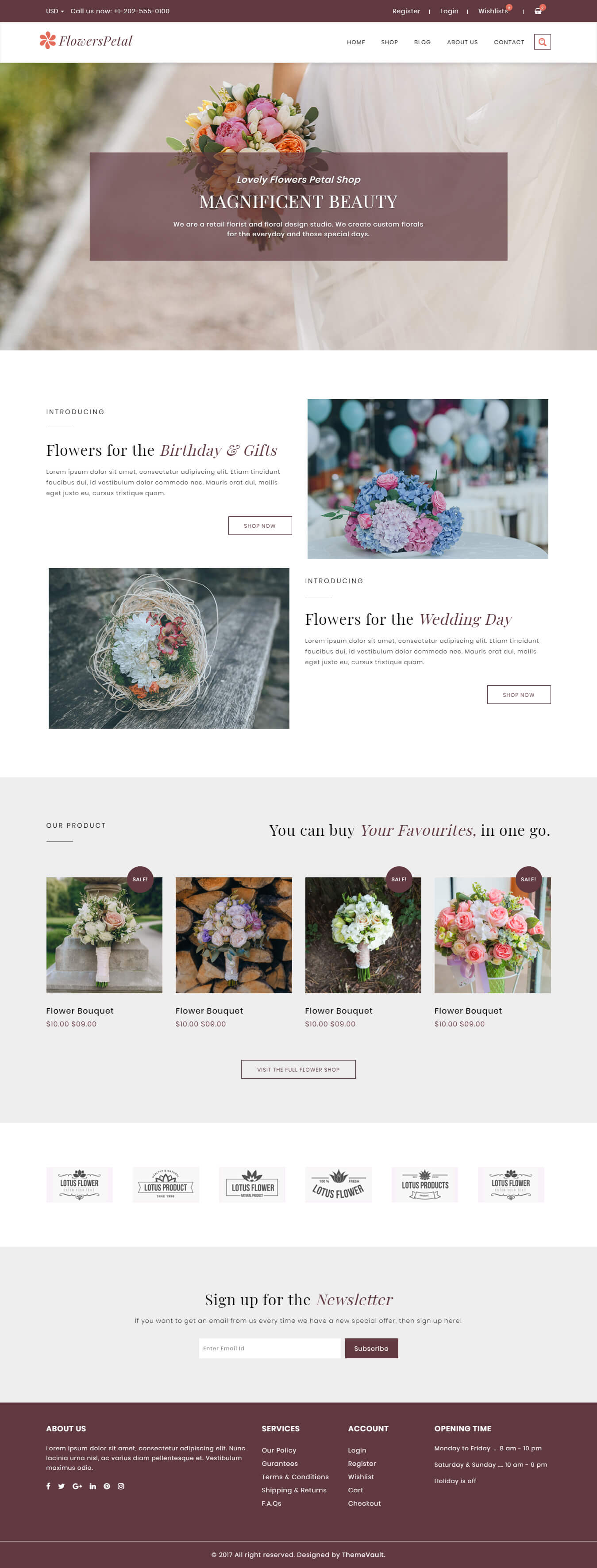 FlowersPetal eCommerce Florist Website Template ThemeVault