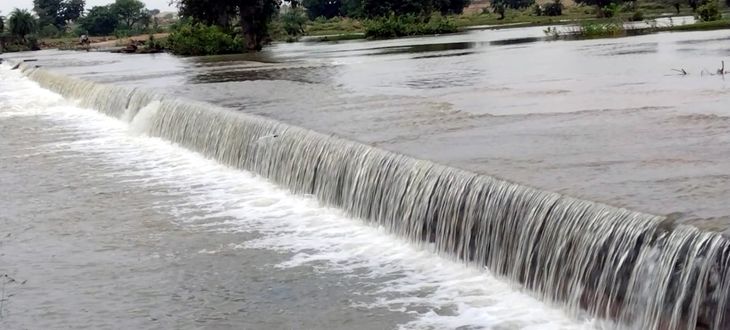 Due to rain a sheet of water flowed on the bridge of Bilsi river