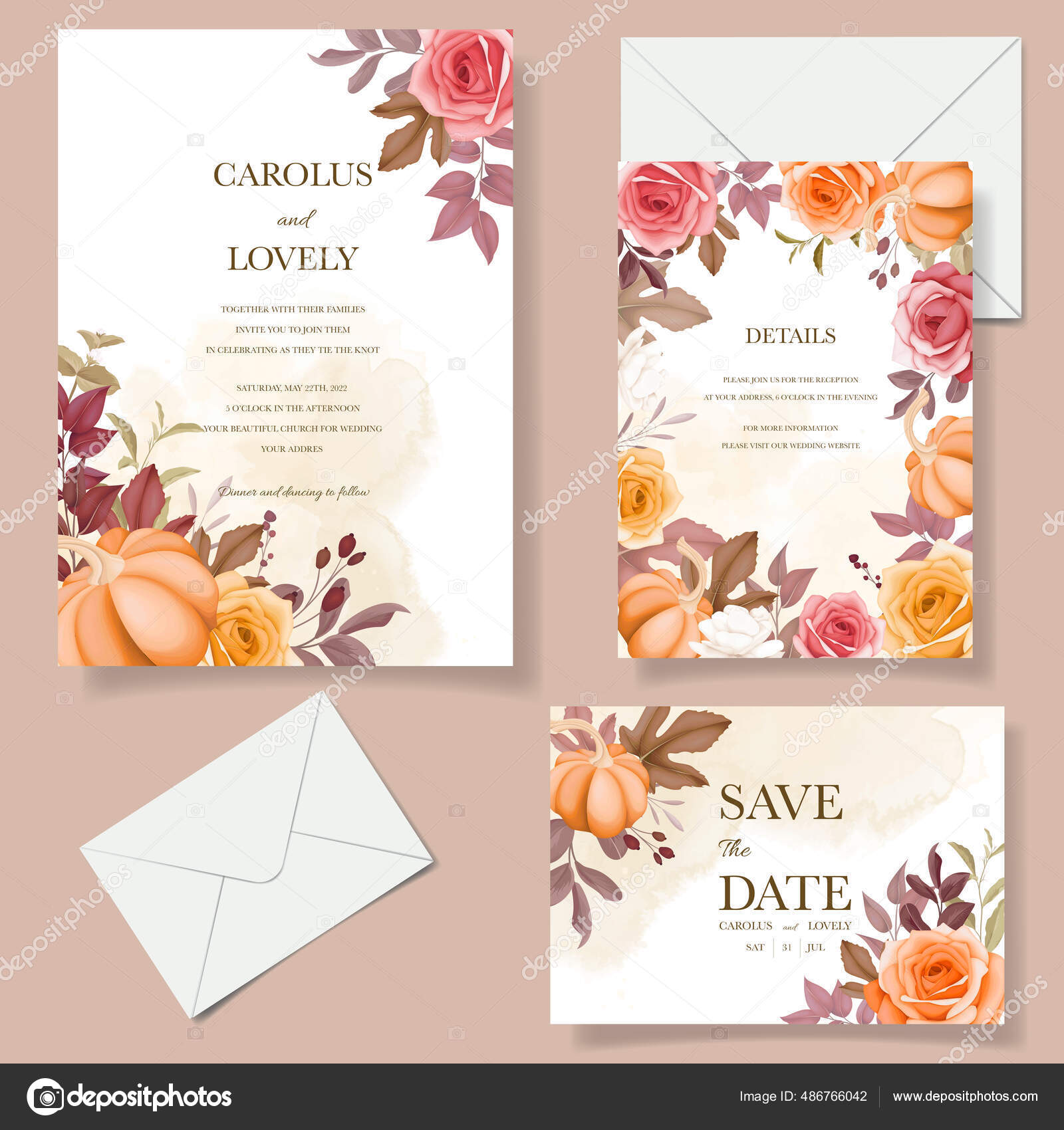 Wedding Card Beautiful Flower Leaves Template Stock Vector (Royalty