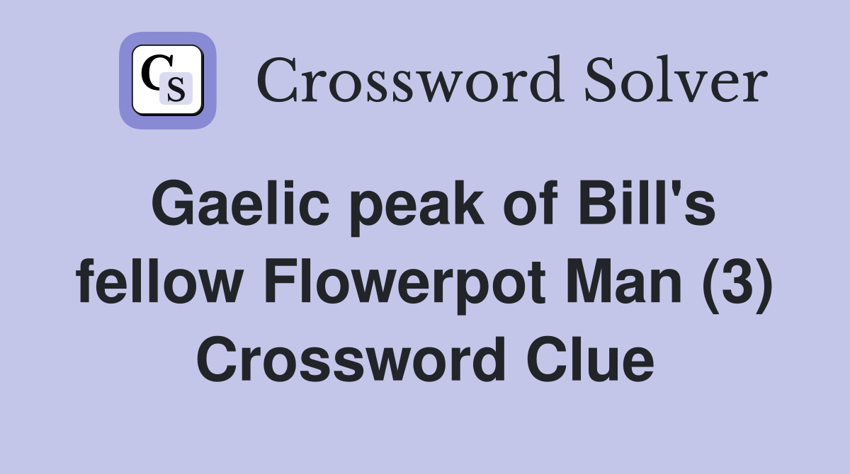 Gaelic peak of Bill s fellow Flowerpot Man (3) Crossword Clue Answers