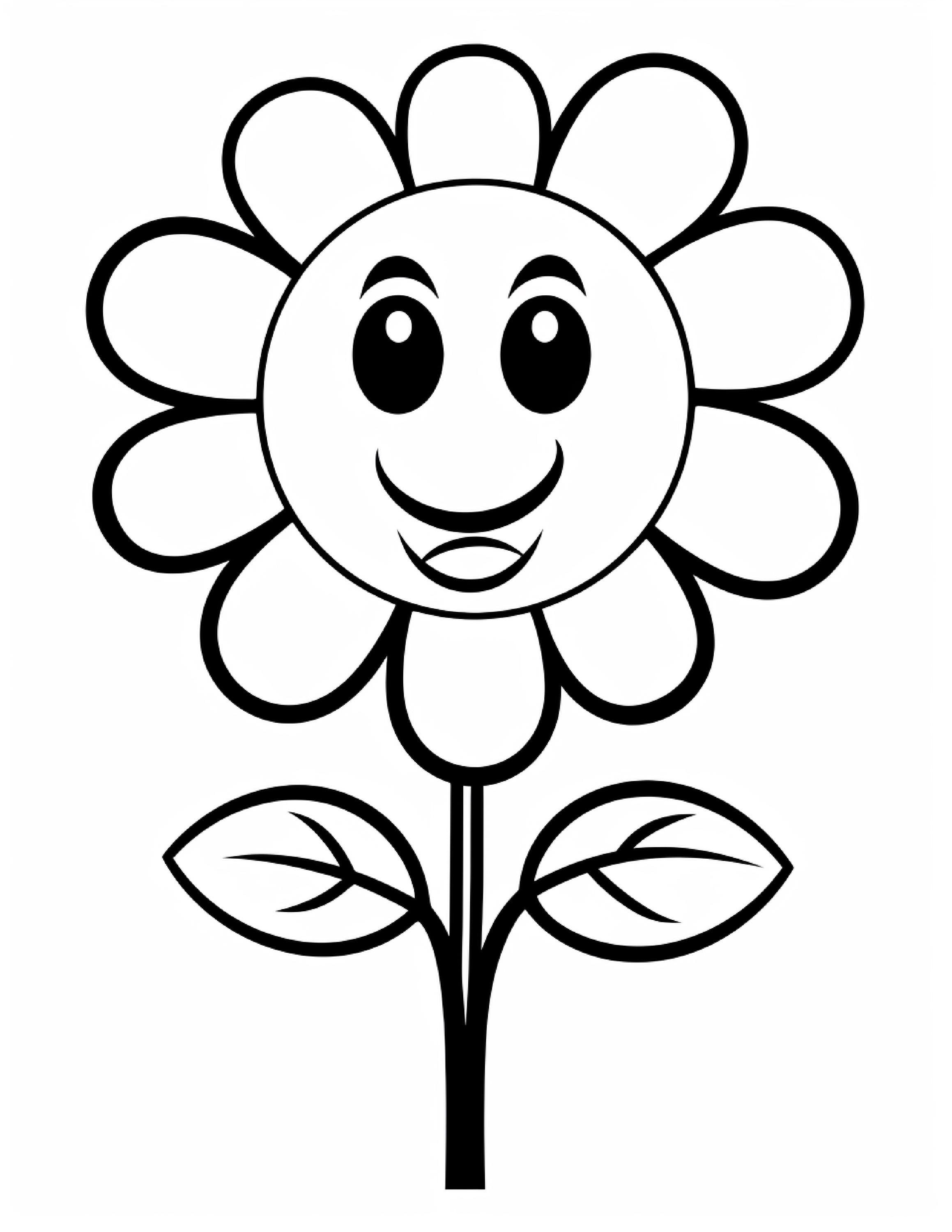 Cheerful Cartoon Flower Illustration for Coloring Book Pages Playground