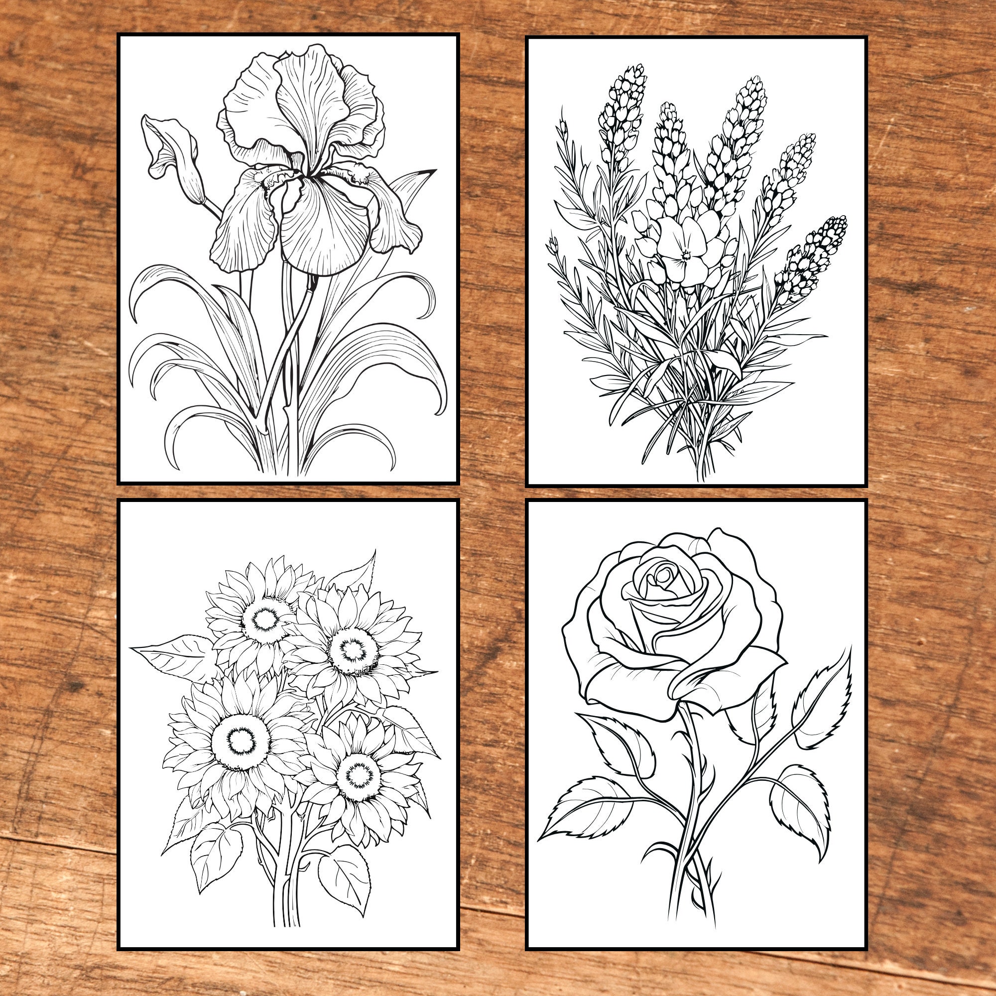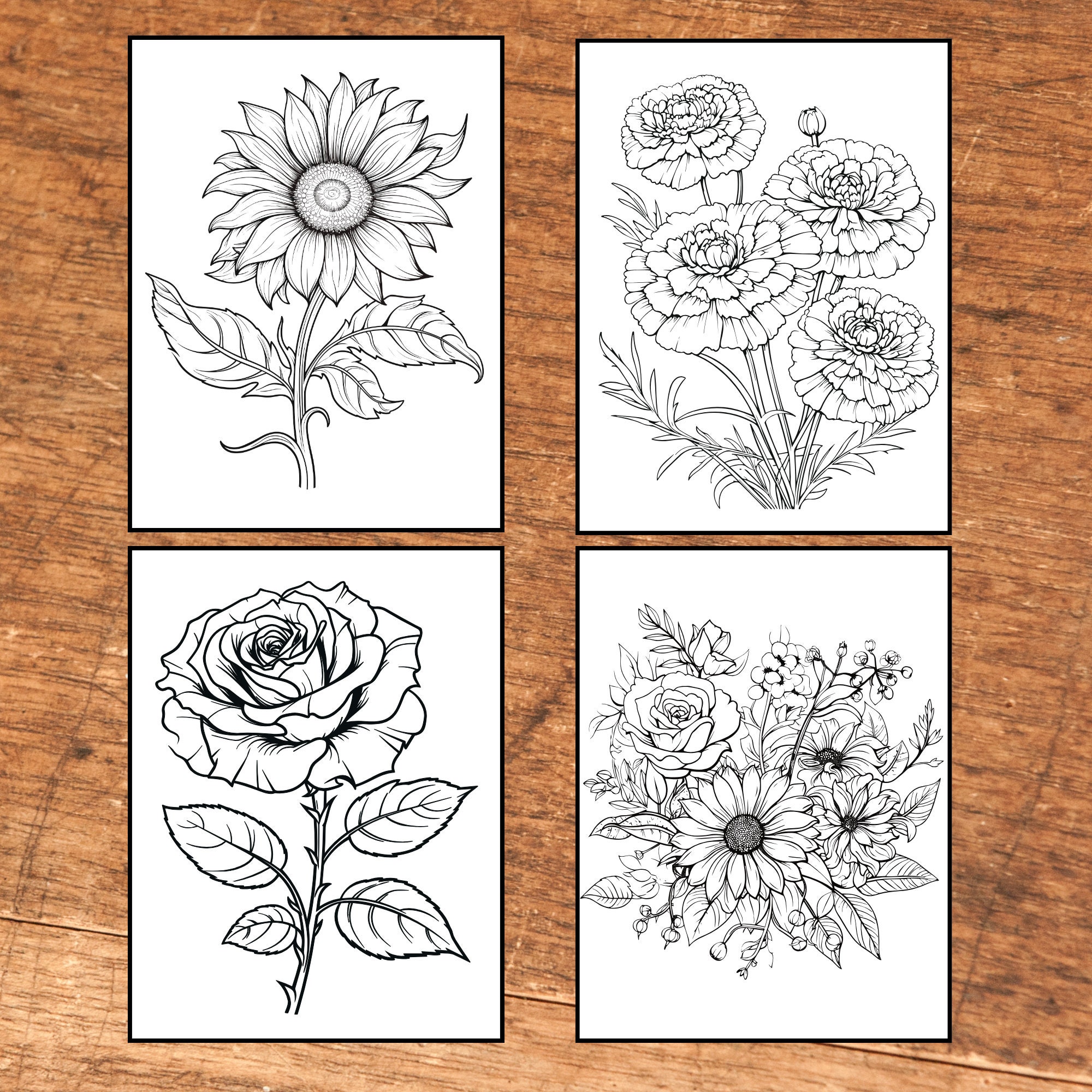 50 Printable Flower Coloring Pages Coloring Book Adults Black and