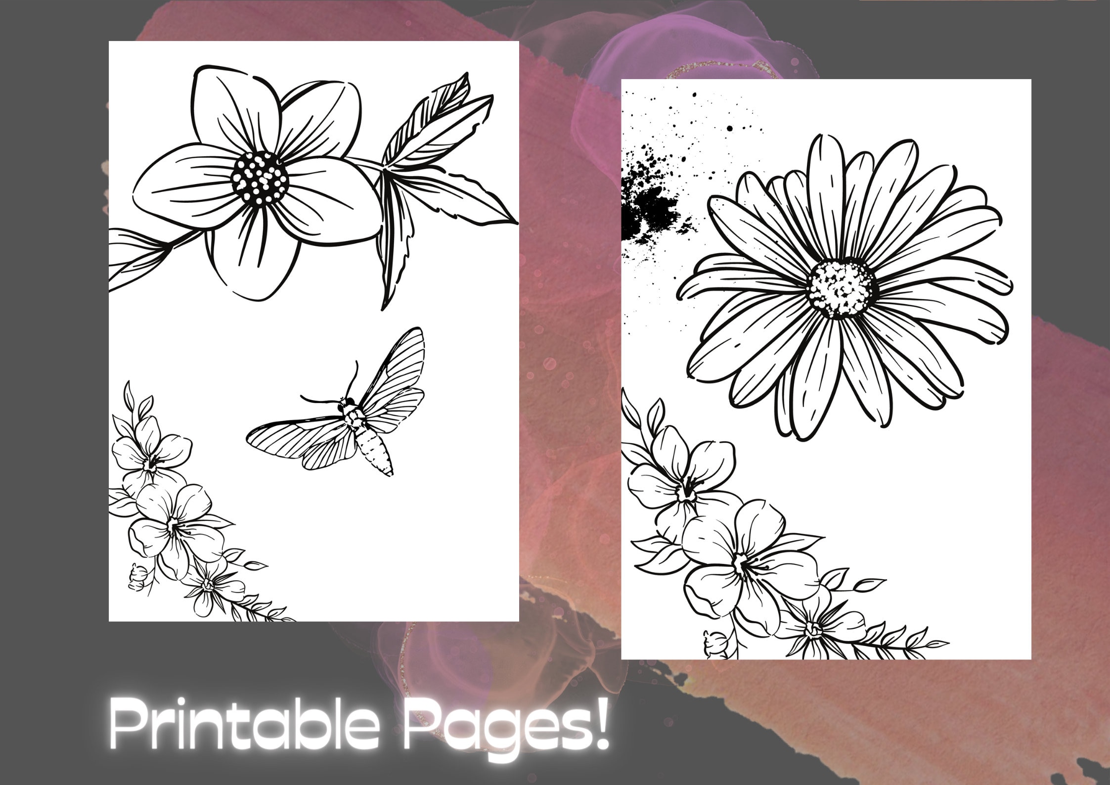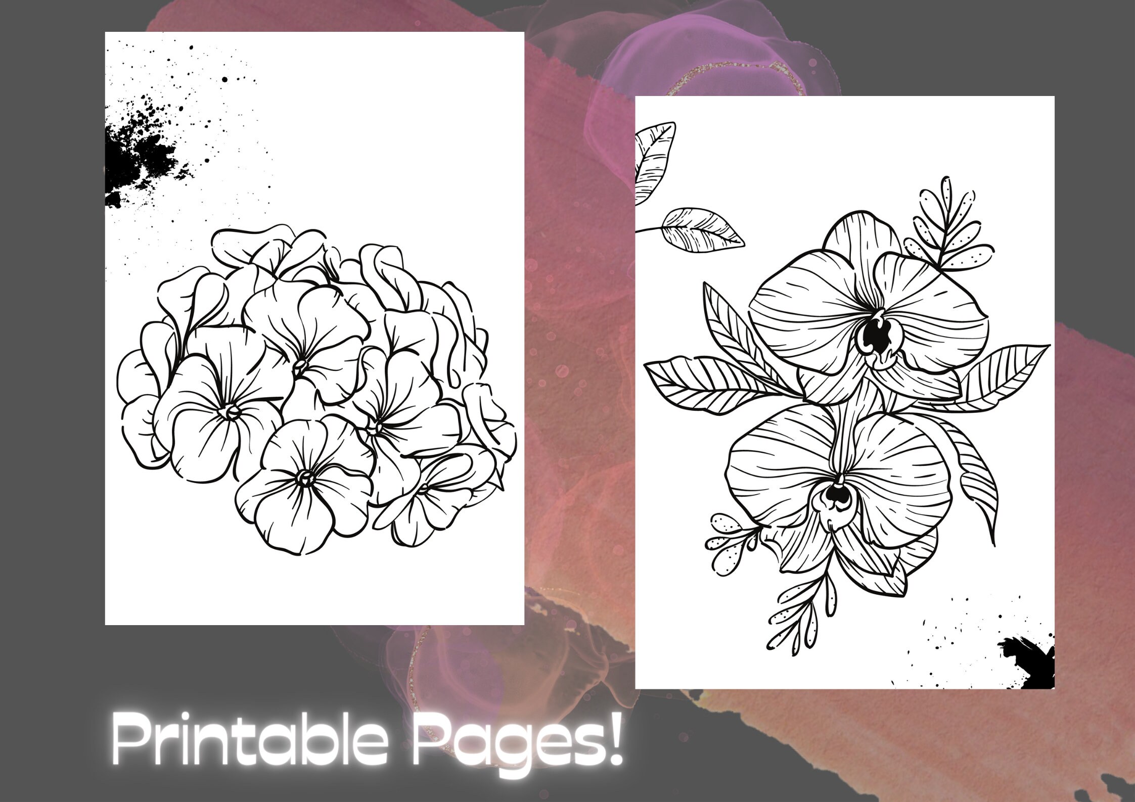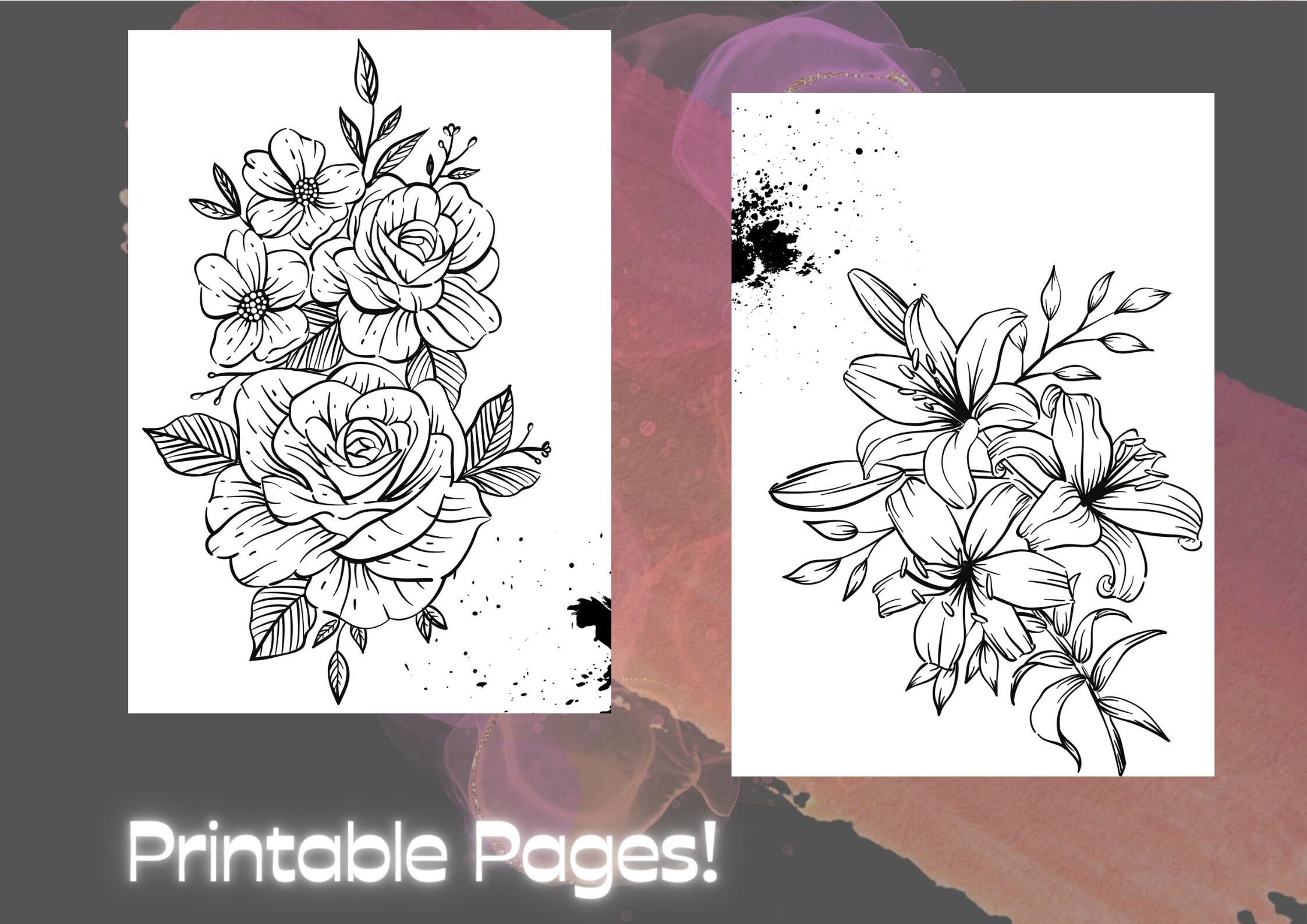 14 Printable Flower Coloring Pages Coloring Book Adults/kids Black