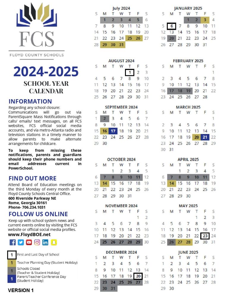 Official School Calendar for 2024 2025 Floyd County Schools Facebook