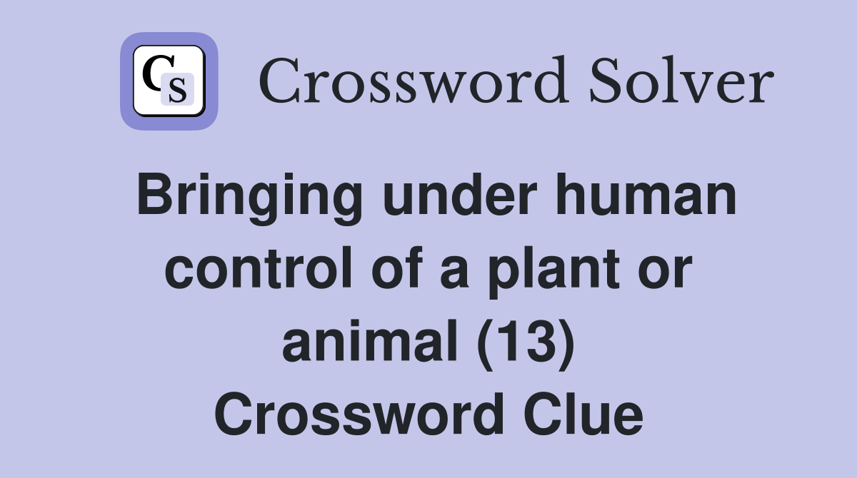 Bringing under human control of a plant or animal (13) Crossword Clue