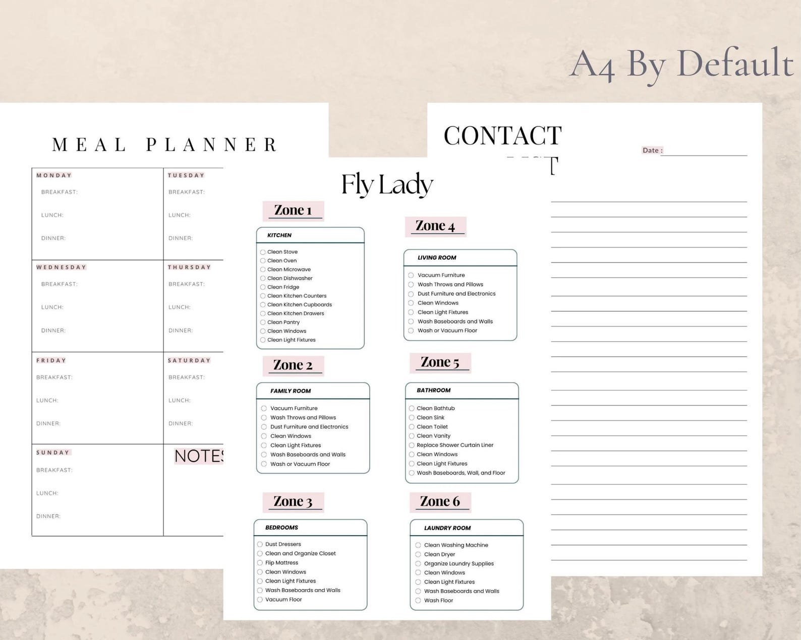 FLY LADY Cleaning Schedule Printable Portrait Landscape Pink