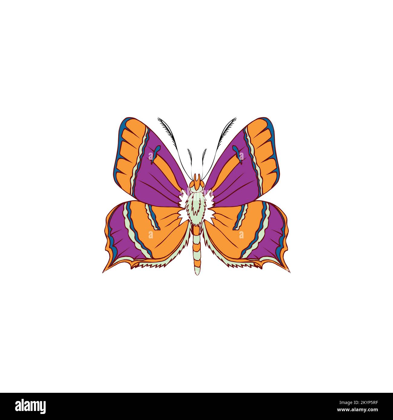 Creative hand drawn flying butterfly template on a sky background Stock