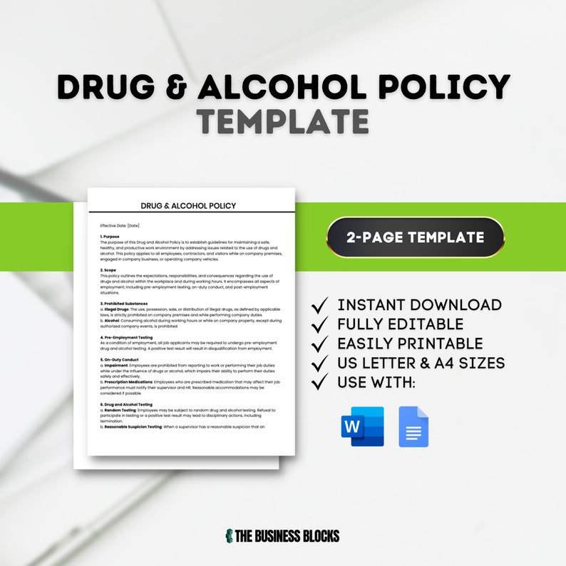 Employee Drug Alcohol Policy Template HR Employment Etsy