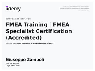 FMEA certificate PDF