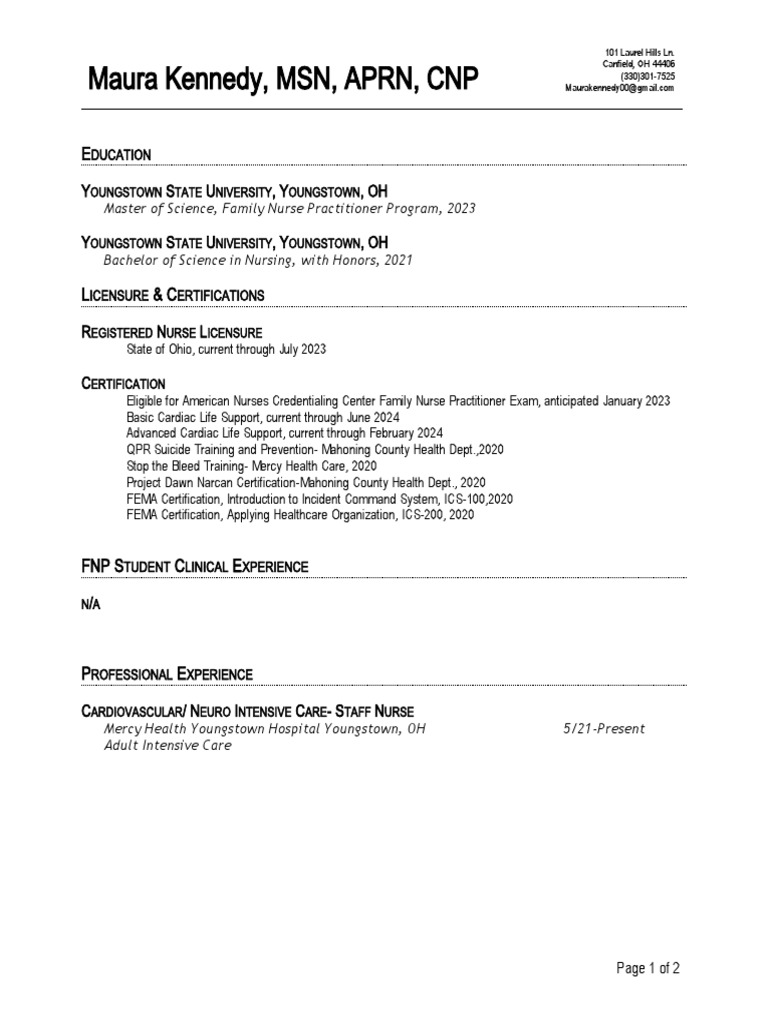 Fnp Resume Template