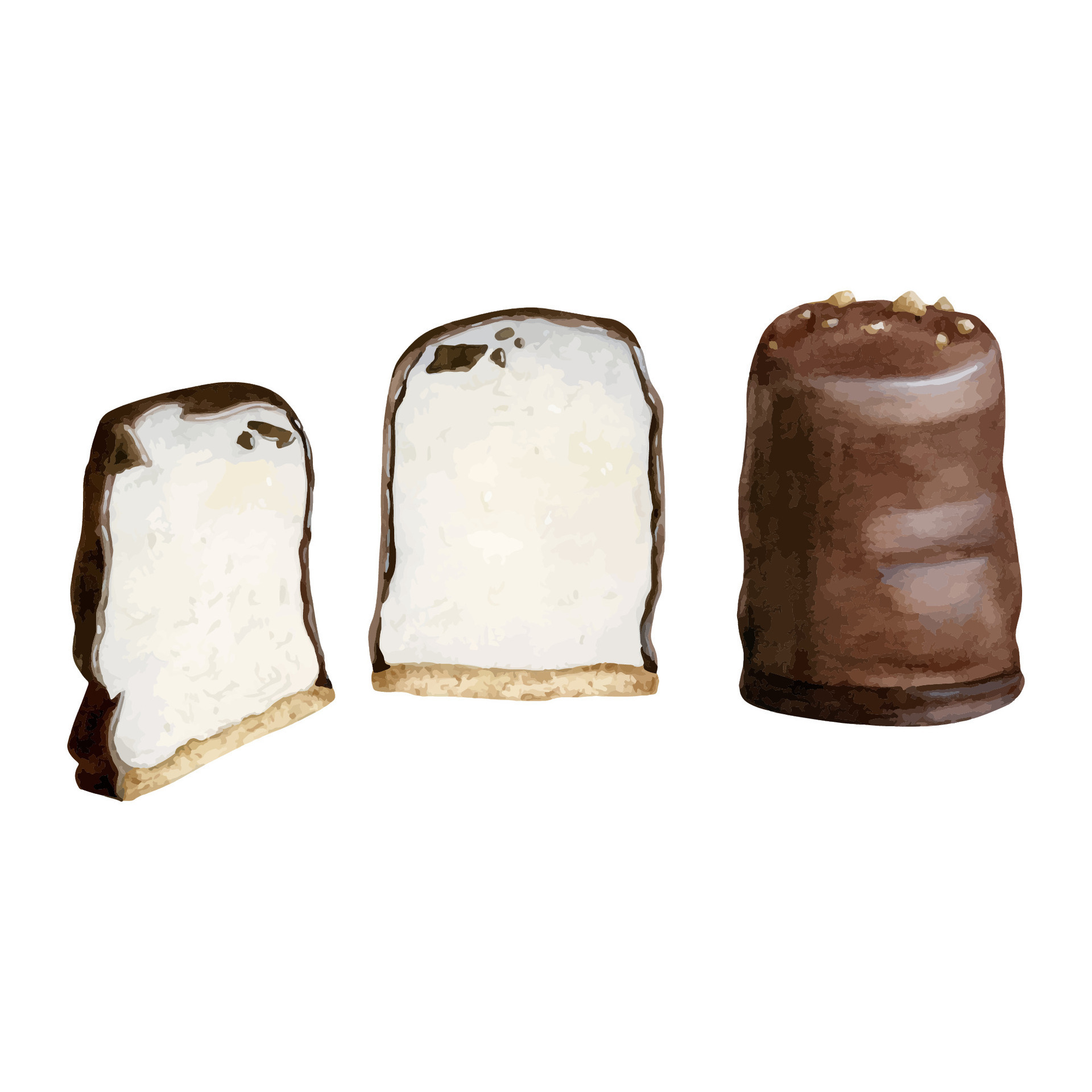 Chocolate coated Marshmallow Treats Isolated on White Background