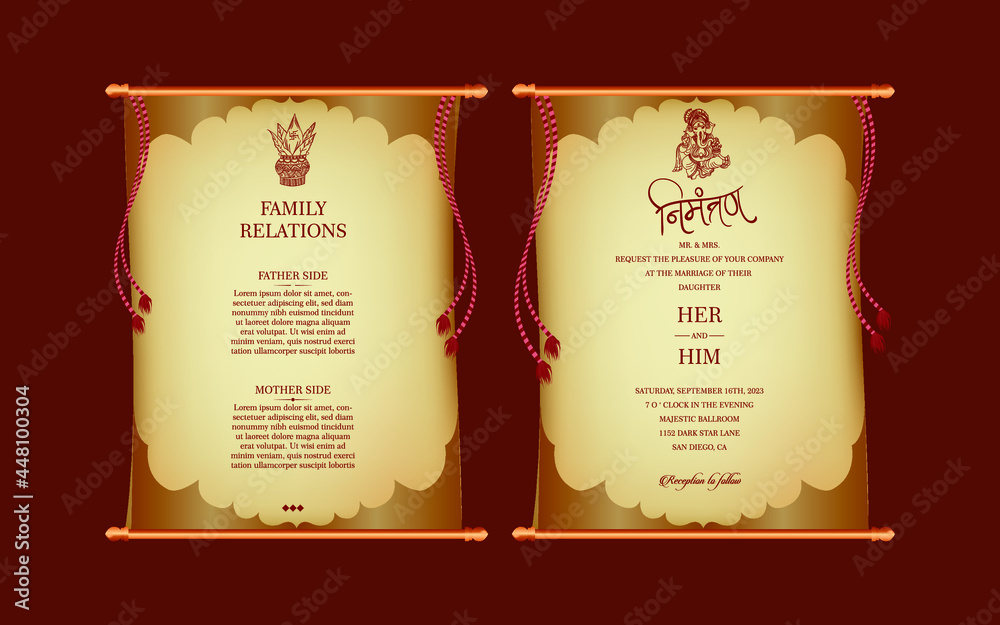 Indian Rajputana style scrolled foldable wedding card invitation design