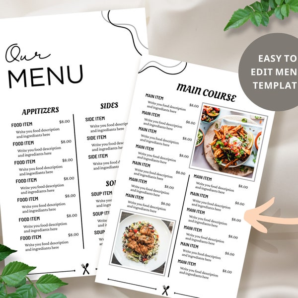 Foldable Menu Holder / Custom Menu Cover / A4 Paper Size Etsy