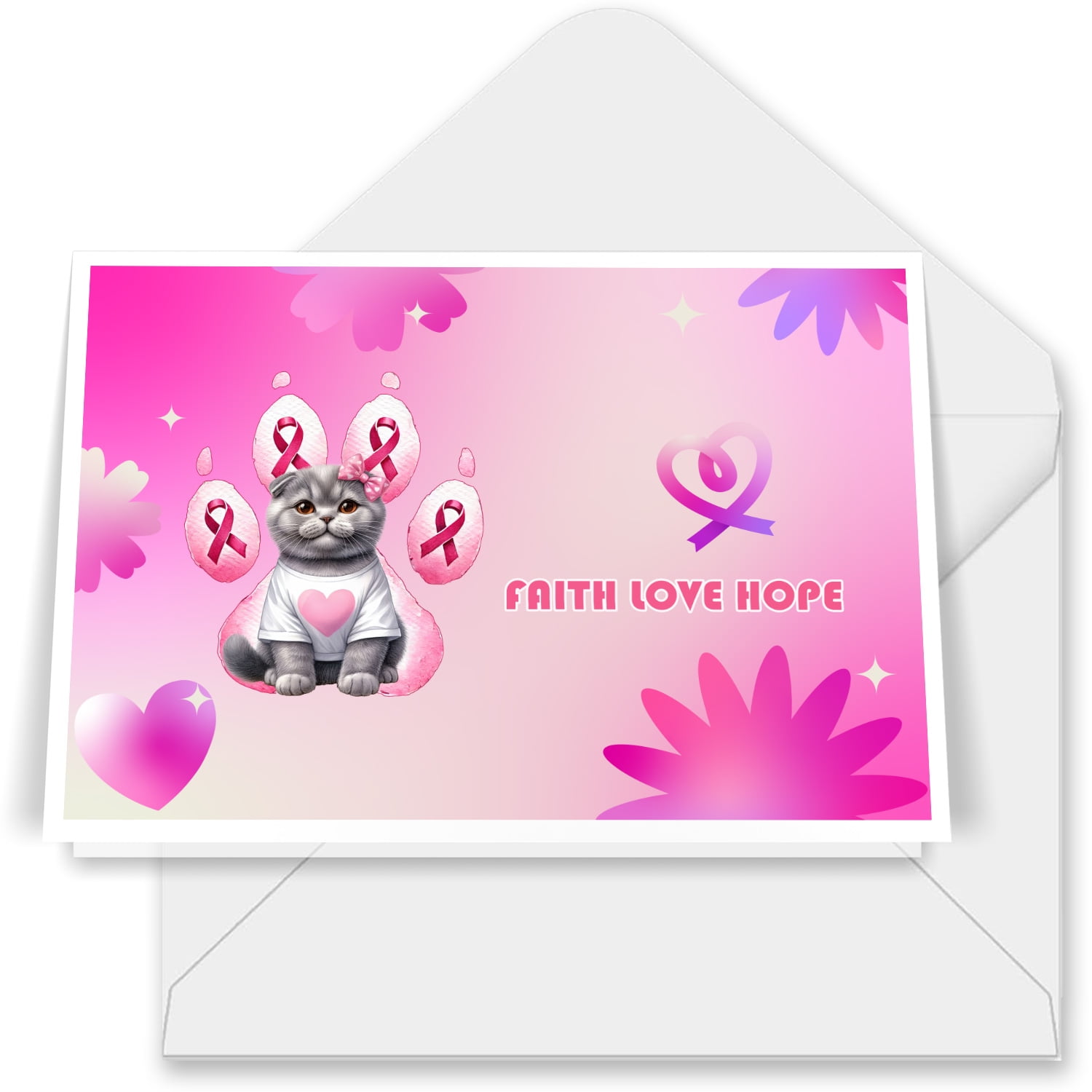 Faith Love Hope Scottish Fold Breast Cancer Awareness Survivor 7x5in