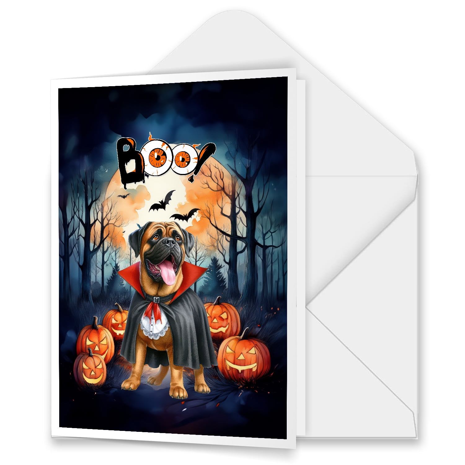 Happy Halloween Vampire Mastiff BOO with Pumpkins Fun and Spooky 5x7in