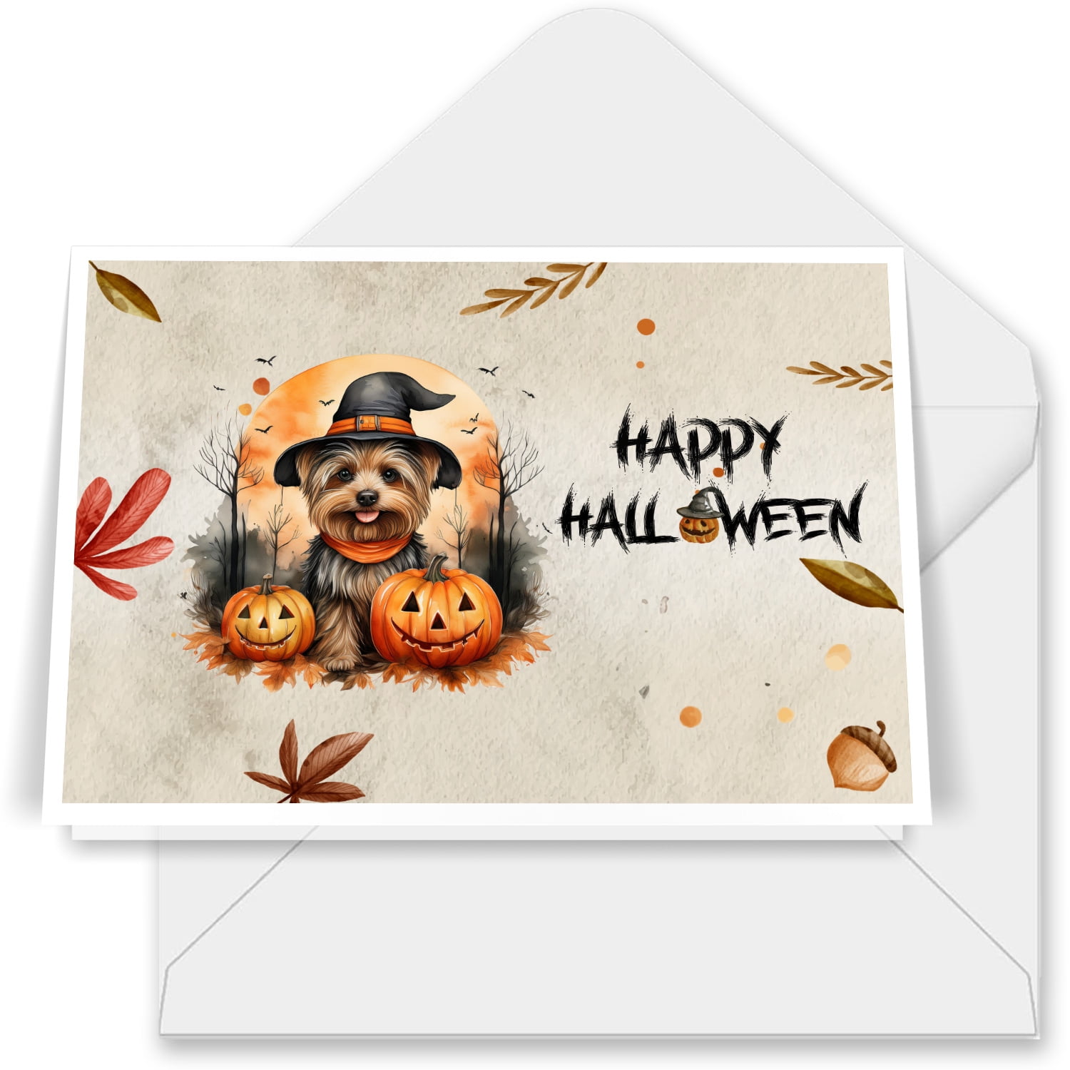 Happy Halloween Yorkshire Terrier Witches Hat Pumpkin Carving 7x5in