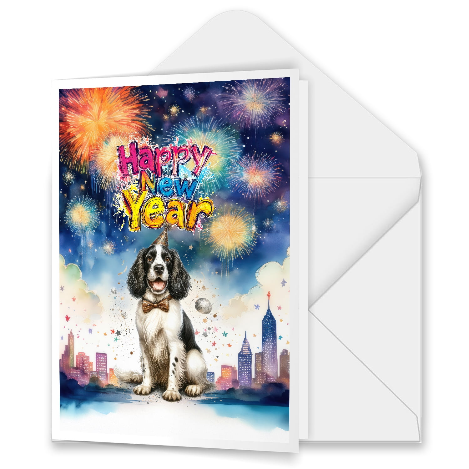 Happy New Year with English Springer Spaniel Fireworks Holiday Xmas