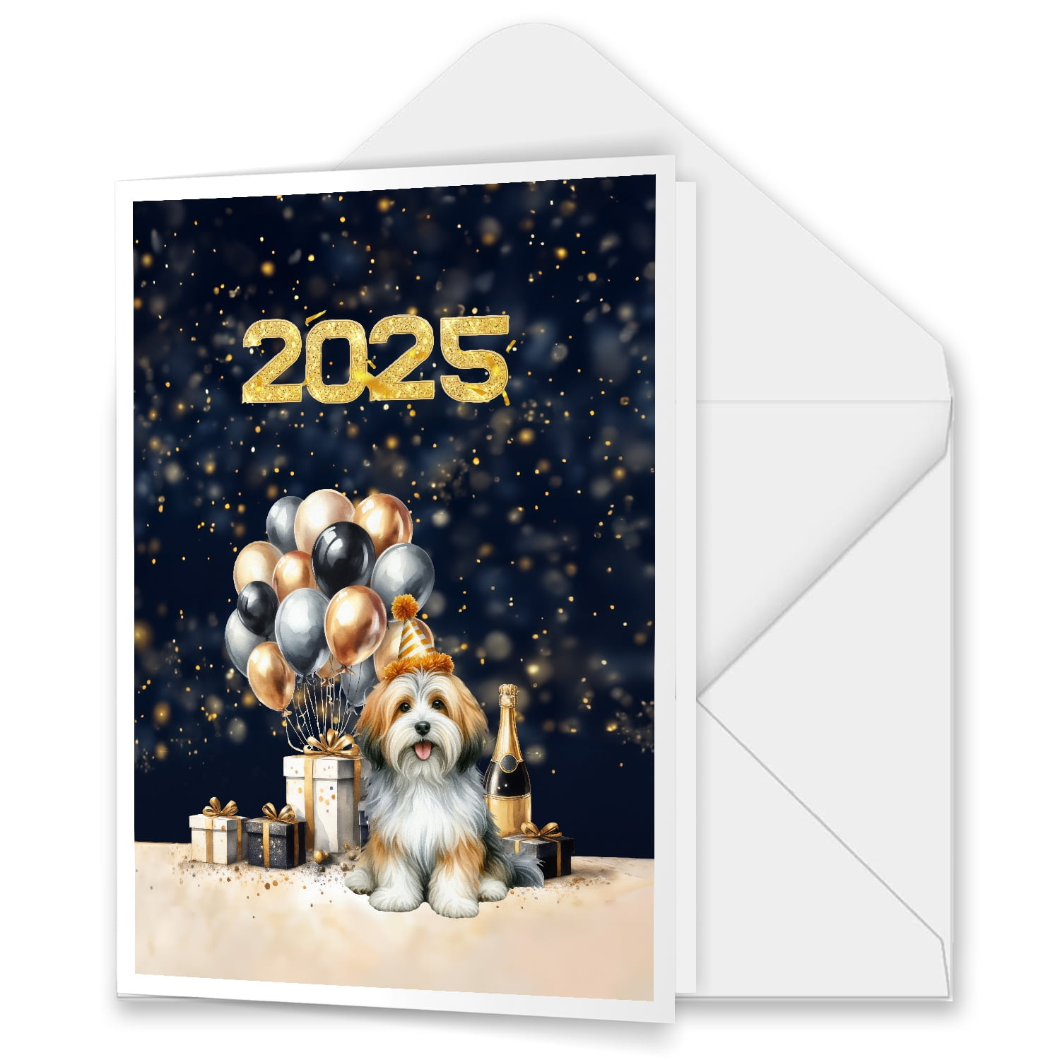 Happy New Year Havanese Welcome 2025 Balloon Firework Party 5x7in