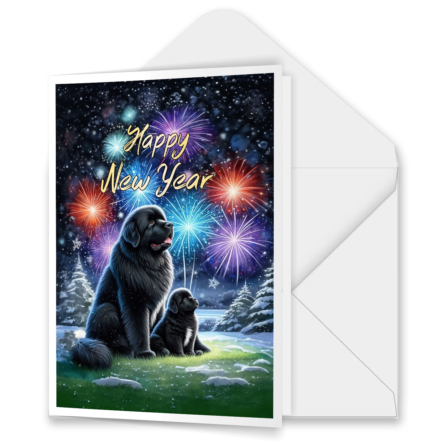 Happy New Year Newfoundland Family Cheer Winter Midnight Firework 5x7in