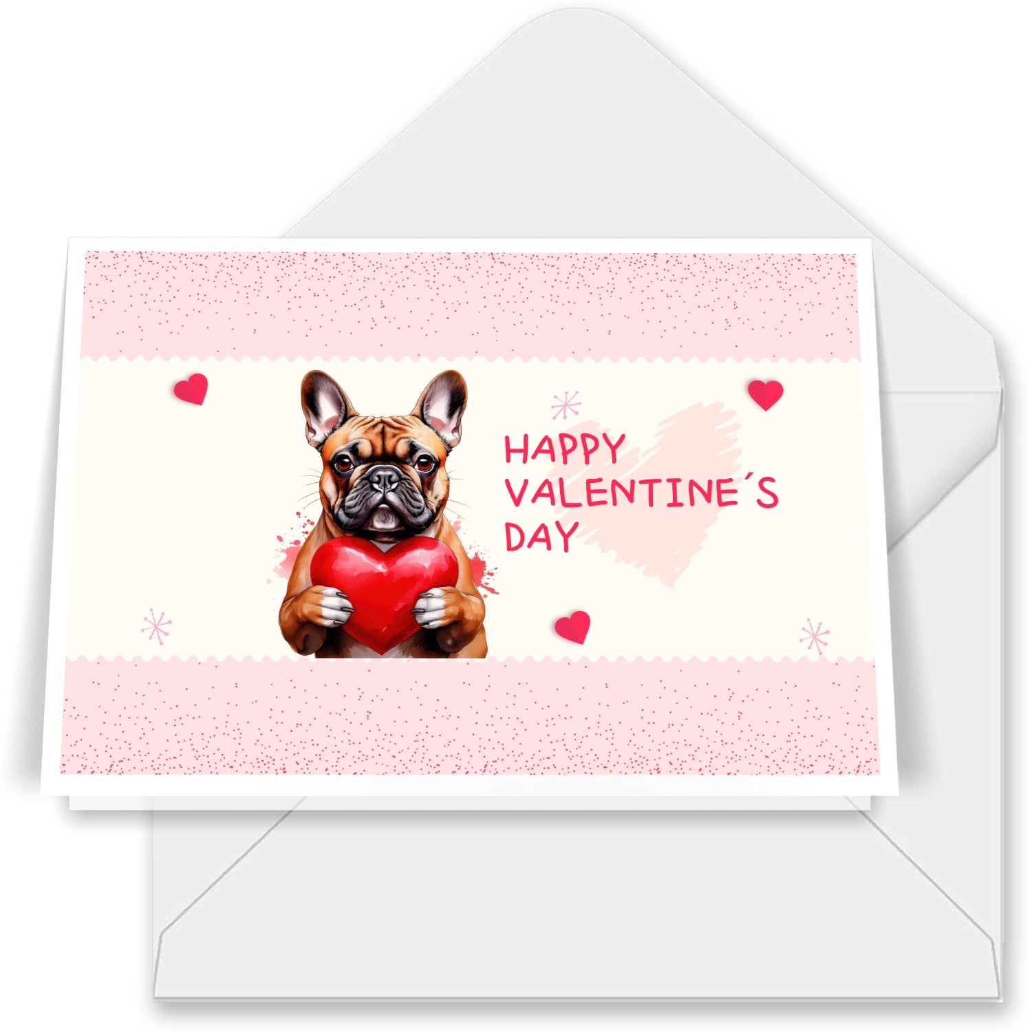 Happy Valentine #39 s Day French Bulldog Brings Love Heart 7x5in Folded